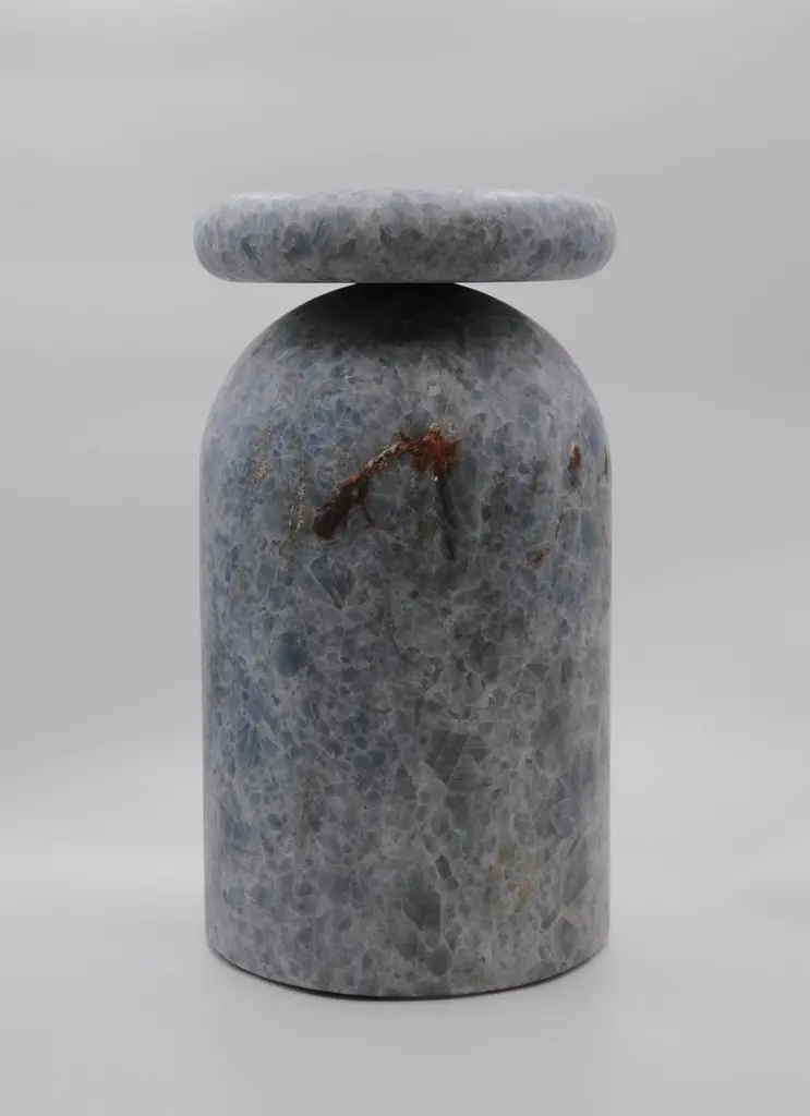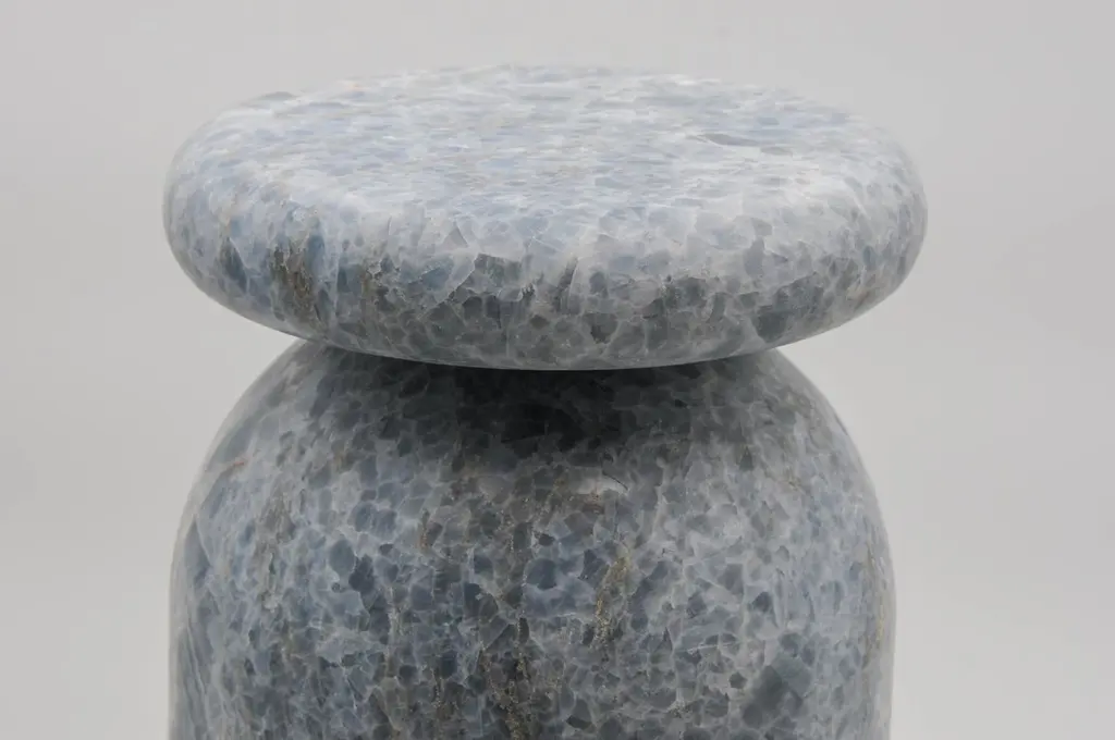 Cult Stool, Sculptural Side Table, Blue Calacite
