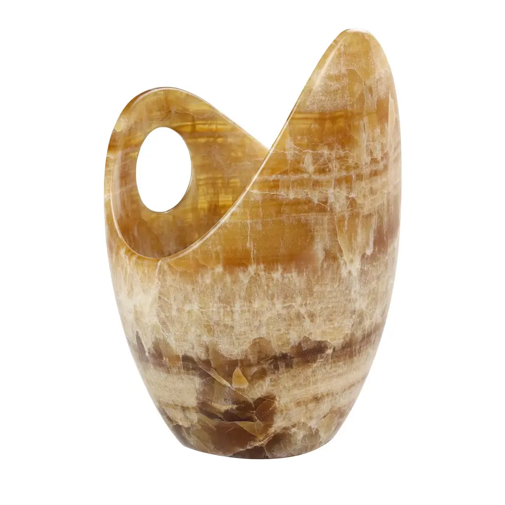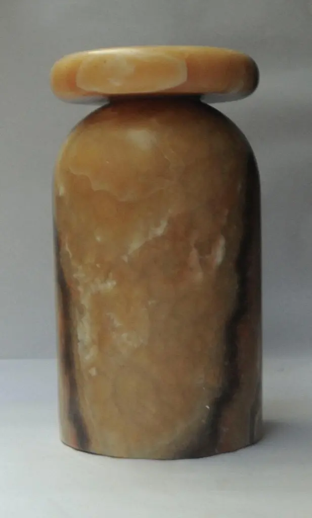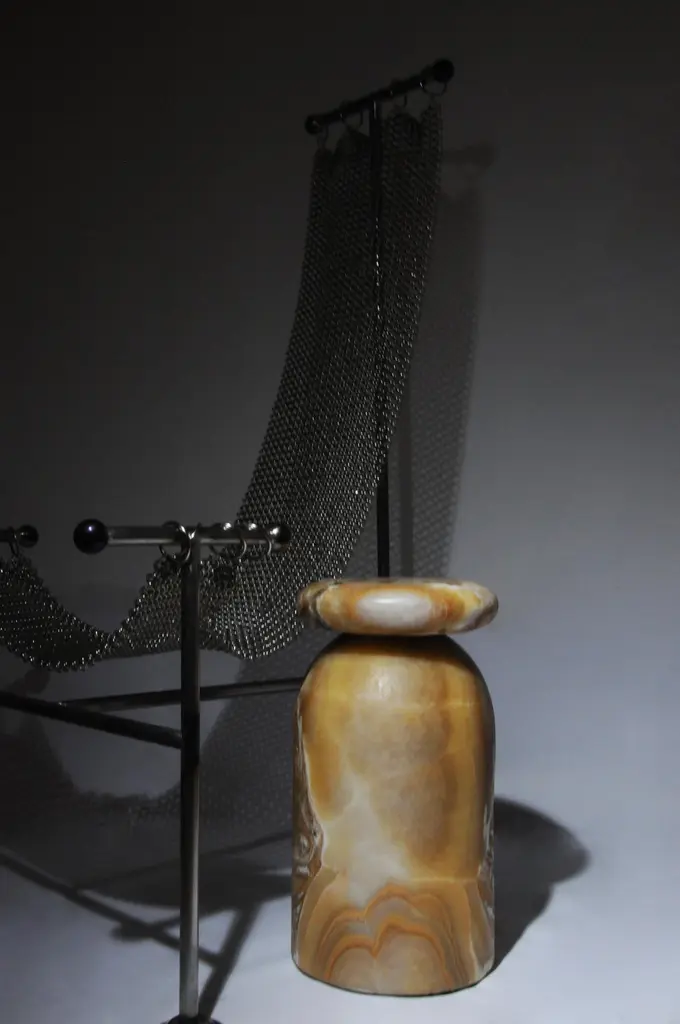 Cult stool/ side table; a hand sculpted stone from a Mexican marble and Mexican onyx conglomerate, remits to primal sculptural-architectural language while displaying materials in a modernist manner. The piece allows for the specificity of the material’s eccentric pattern formations to rein over its final appearance. Each edition; a unique piece.Working with rocks that are endemic to Mexico contextualizes the work at a geological level. Situating the pieces in a continuing and evolving historical narrative. Like taking part in an archeological exploration, working with native stones reveal a heritage of meticulous craftsmanship developed under the possibilities and limitations of local materials. When sculpting stone, you only get one chance to get things right. As each rock is different one must tailor form onto the material, in the way of discovering what each piece hides.Exhibited atLOVE HOUSE: New York (2023)TAGLE: Mexico City (2023) Transatlantico- Galerie Philia: Mexico City (2022) Collectible- Curated Section: Brussels (2022)Origins- MOVIMENTO: Milan (2022)