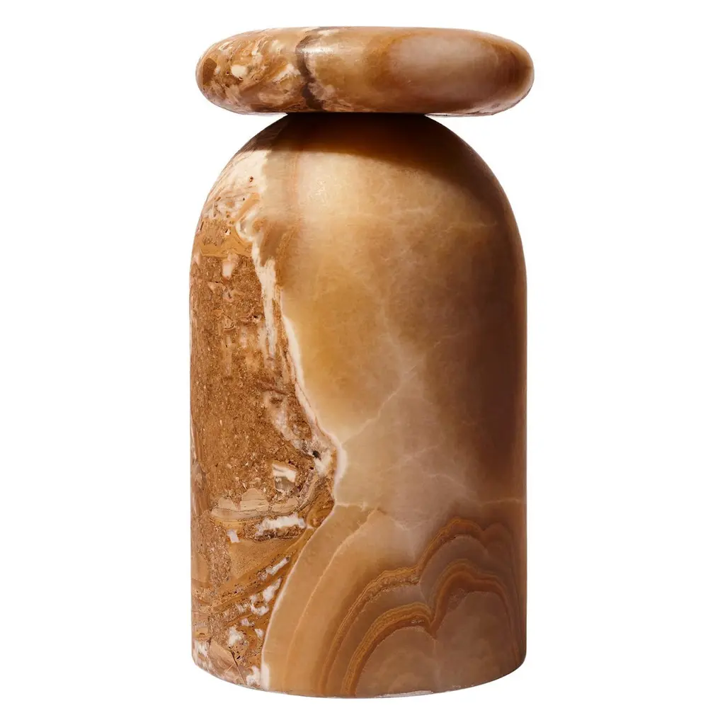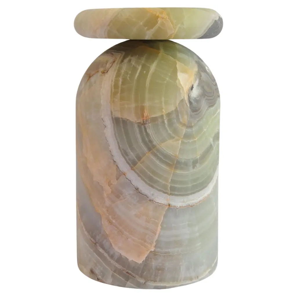 Cult Stool, Sculptural Side Table, Mexican Onyx Marble Conglomerate