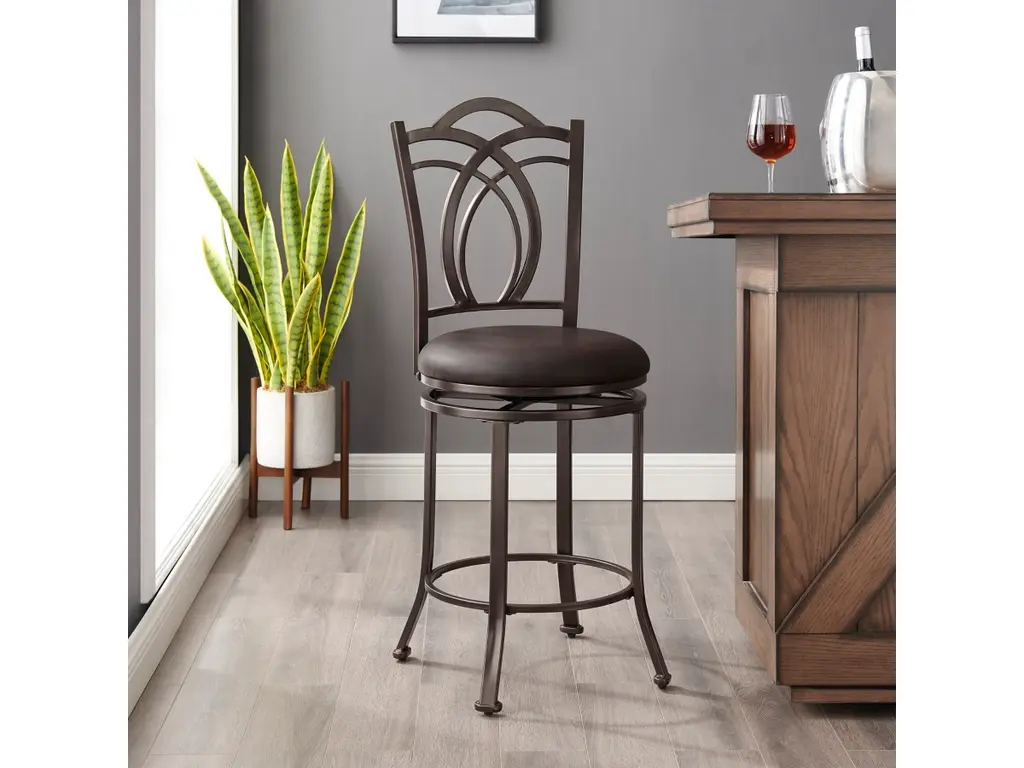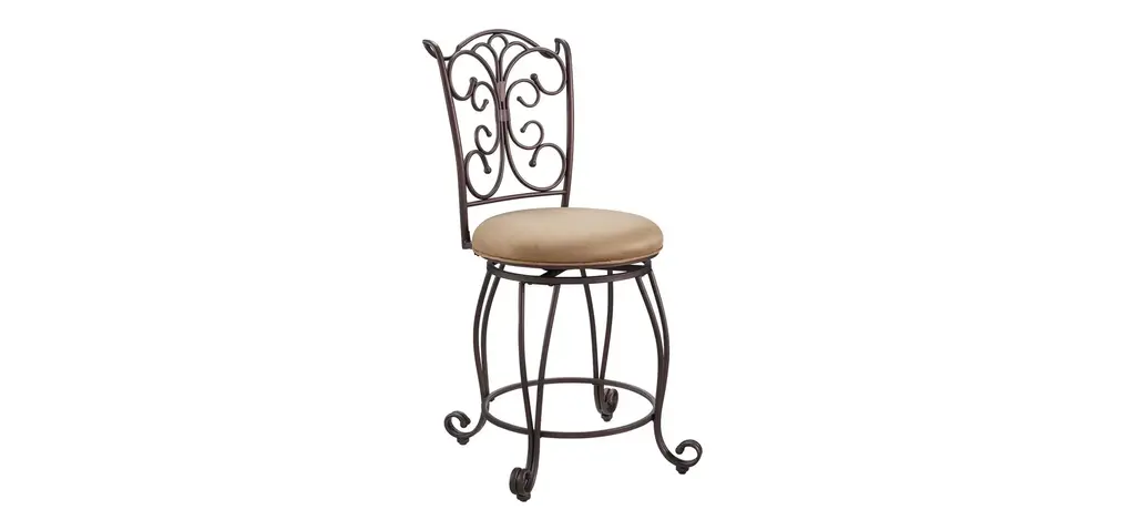 The elegance and unique style of the Curves Counter-Height Stool will carry throughout your kitchen, dining, or home pub area. Crafted of metal and highlighted with subtle curves and a distinctive back, this stool is a positively striking addition to your home. The cushion is piled high for extra comfort making this stool versatile for any gathering area. The seat is covered in microfiber.