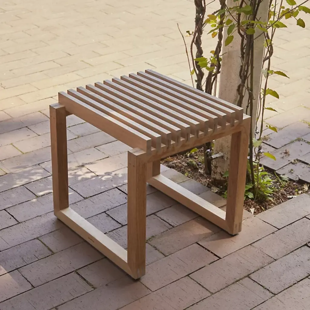 Make an impression with the airy, inspired design of the Cutter Outdoor Stool/Side Table from Fritz Hansen. A stately, angular design from the mind of Niels Hvass, it’s fashioned from tough teak wood, resting atop an angular, sharp-cornered array of slim forms, securing a top with parallel slats placed edge-on atop it, able to function as either a side table or a small stool depending on need. The wood joinery is subtle and stylish, drawing just the right amount of attention.