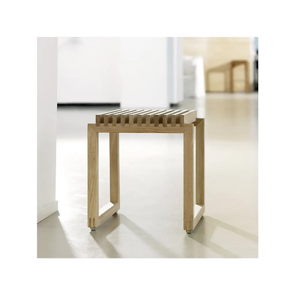 The first piece of Skagerak’s Cutter collection was a wooden bench that Niels Hvass designed in 1999 for the Planken Ud exhibition at Designmuseum Danmark. The clean-lined design of the teak bench suitable for outdoor use comprises a simple wooden frame and slats connected by finger joints. Hvass drew his inspiration for the continuous shape of the base from Bauhaus movement’s use of metal tubes. Today, the Cutter collection features numerous new designs from a stool to a mirror and storage elements that share the timeless and airy design of the original bench.