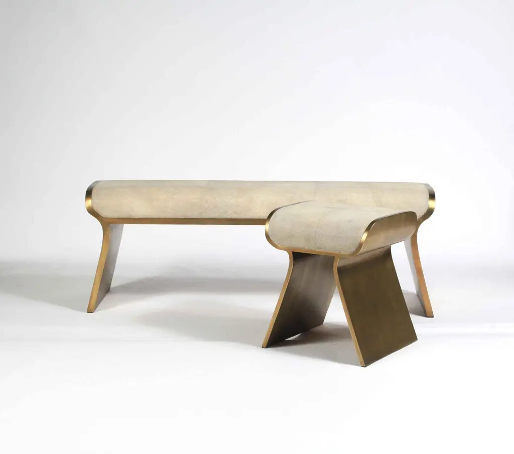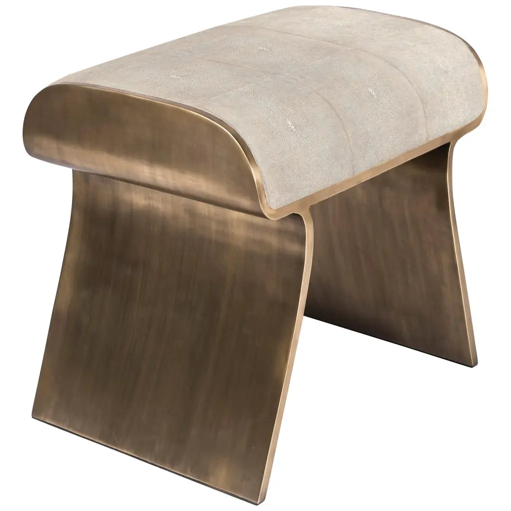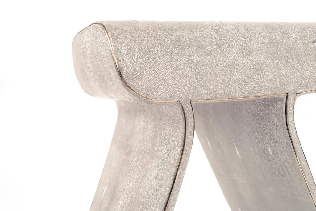 The Paris based label has distinguished themselves since their launch, with their iconic use of shagreen mixed with brass and other exotic materials. All furniture is handcrafted by skilled artisans, ultimately making each piece unique, designed in Paris and produced in the Philippines.The dandy stool inlaid in mink shagreen is a chic seating piece for any space. The sides of the pieces are completely inlaid in bronze-patina brass adding another luxurious element to the piece. The clean lines make it an adaptable piece; Available in other finishes and as a bench, see images at end of slide. This piece is designed by Kifu Augousti, the daughter of Ria and Yiouri Augousti. The dimensions of this piece are 50 x 40 x 50 cm / 19.68 x 15.74 x 19.68"All Kifu Paris pieces are handmade by artisans, ultimately making each piece unique. Custom color/sizing available on request. Wipe clean with soft dry cloth.Although inspired by her parents, her collection of Home Accessories and Furniture is a distinct identity of its own. Kifu uses handmade techniques of elaborate inlay patterns of shagreen, shells, semi-precious stones, materials she experienced as a child growing up in her parent’s studio, but interpreted in a younger quirkier way reflecting her youth. From her "jewelry inspired knobs" on decorative boxes, gold bar boxes and an extravagant inlay pattern mix of shagreen and shell inspired by galactic constellations, as seen on her enormous round mirror, is refreshing to see. Kifu embodies whimsical elements throughout her collection and is not afraid to be daring and unexpected in her approach to design. All shagreen-covered items should be kept out of direct sunlight, color variants may occur on the stingray and other exotic finishes, but this showcases the Parisian label's commitment to creating authentic luxurious products using natural components.