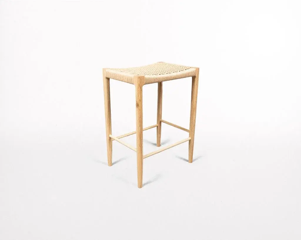 Danish Modern Counter Papyri Stool In White Oak With Natural Chord