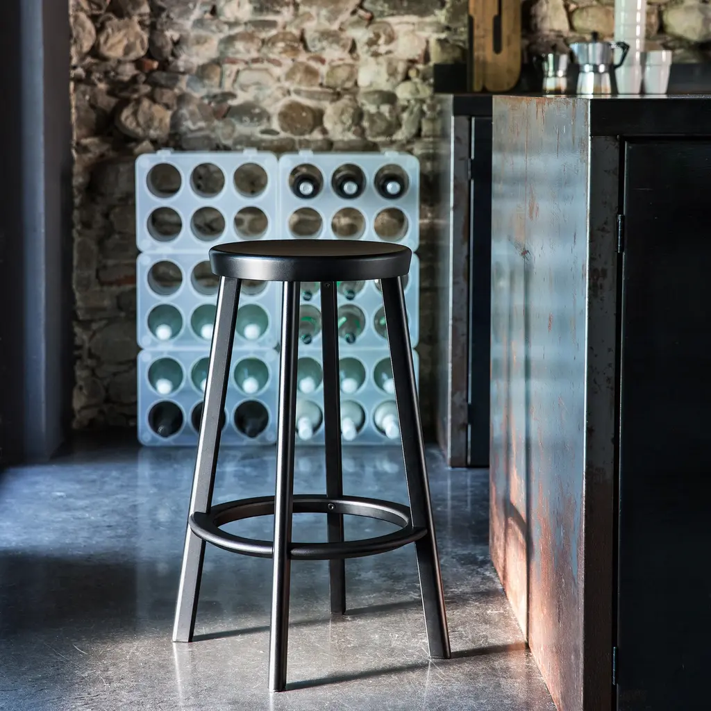 Indulge in classic sophistication with the Deja-vu Outdoor Stool from Magis. Crafted from die-cast and extruded aluminum for a sleek and corrosion-resistant finish, this stylish seat features an elegant round top supported by angled legs for a look that's both classic and modern. Perfectly practical and versatile, the Deja-vu Outdoor Stool is well-suited for kitchen countertops, outdoor high top tables, and bars alike. Highlights