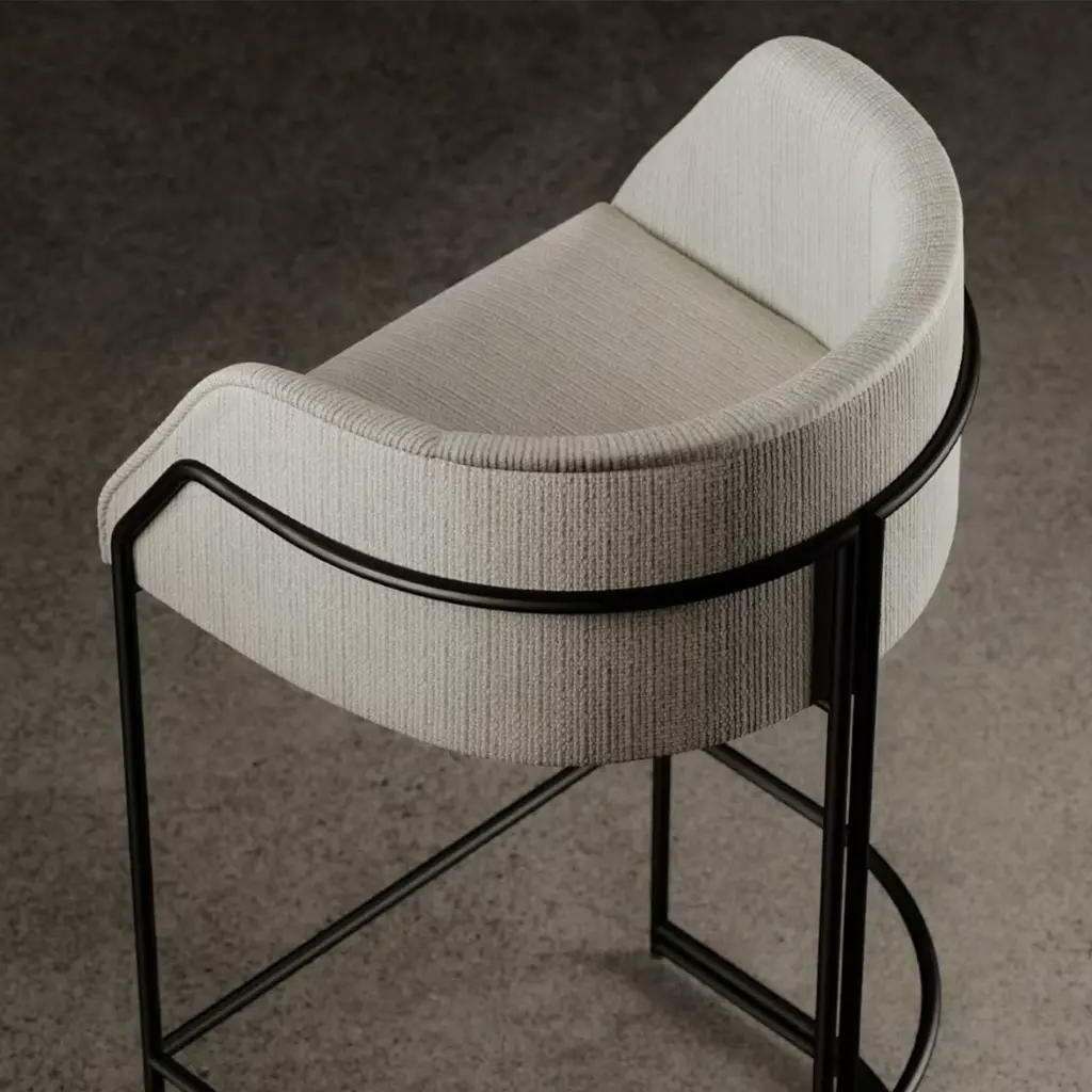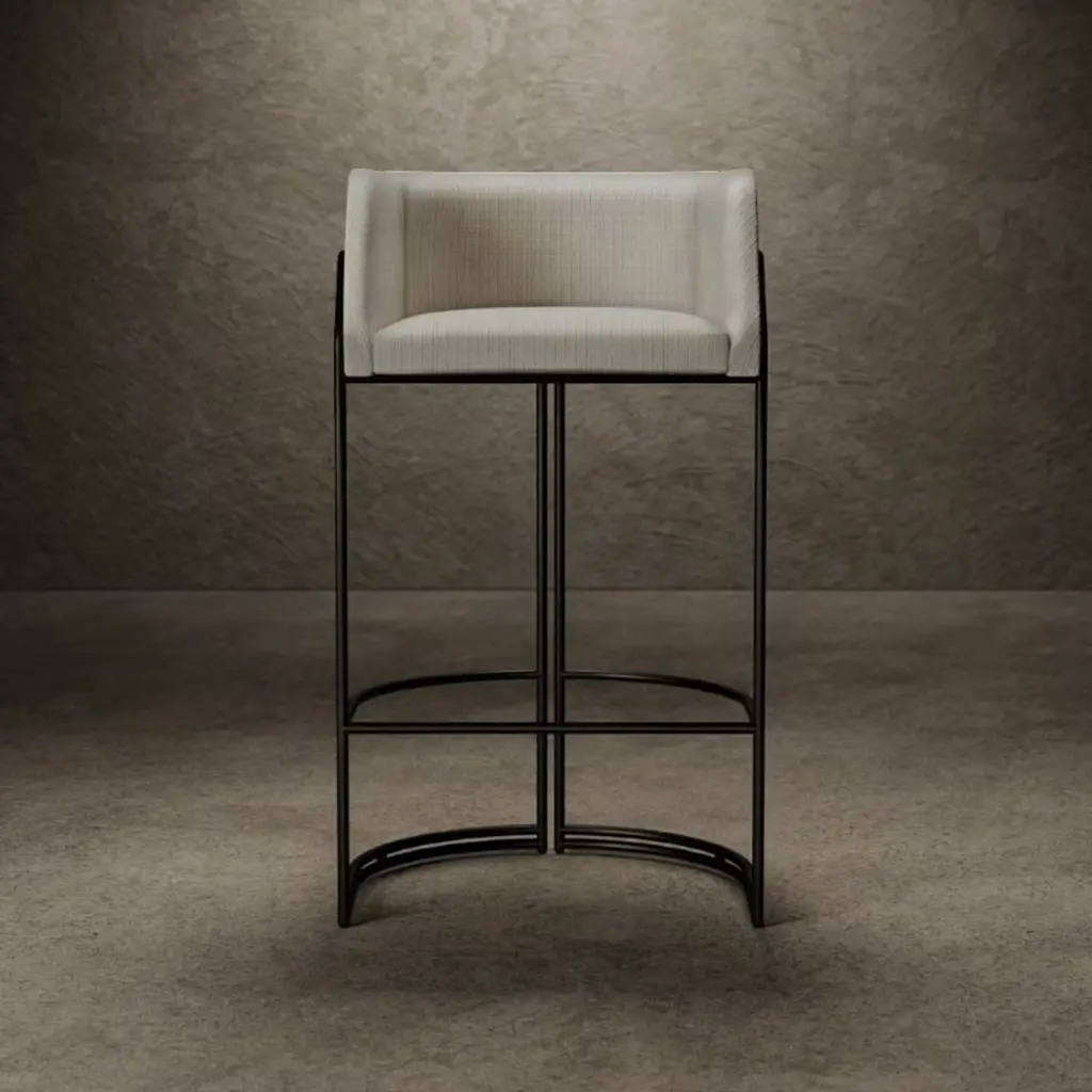 Déjà Vu stool is composed of a wooden shell padded with different densities of polyurethane foam and finished with an upper layer of acrylic fiber. The Déjà Vu stool has the seat completely covered in fabric or leather, while the base is in the metal finishes of the collection. The metal tubular base wraps around the seat. This version of thDéjà Vu stool is upholstered with Grand Natté White by Dedar. Available in different finishes. Please, contact the Concierge service for further information.