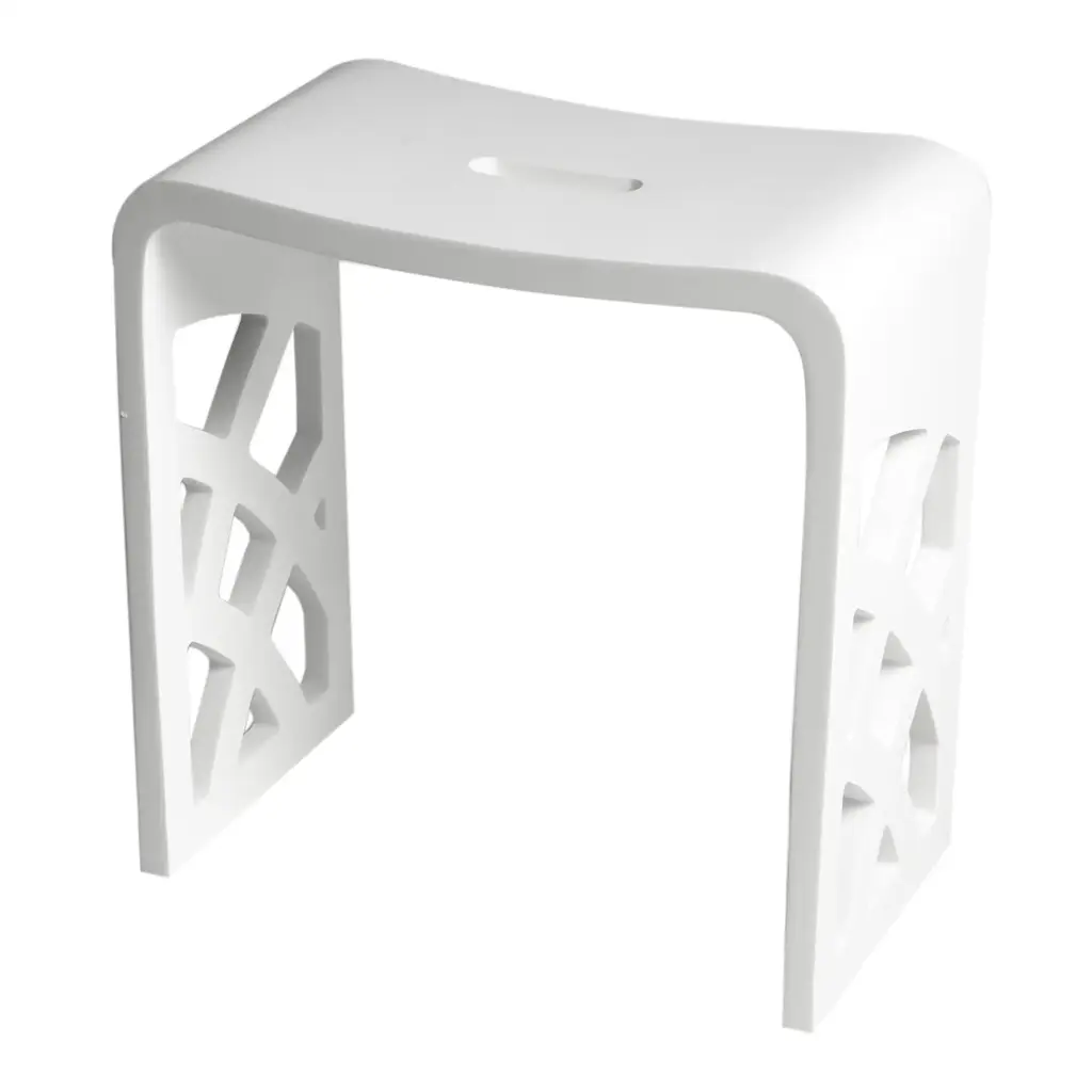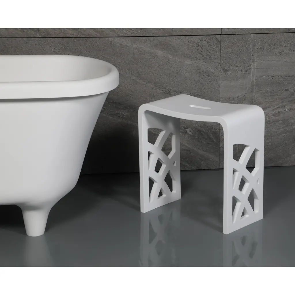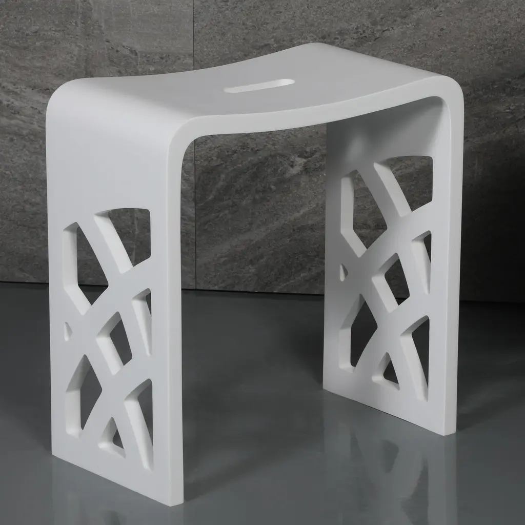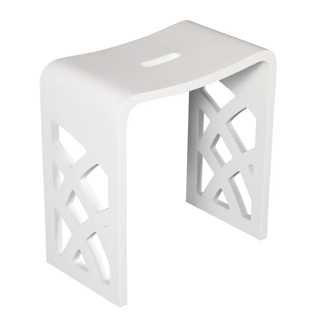 Designer White Matte Solid Surface Resin Bathroom / Shower Stool - White