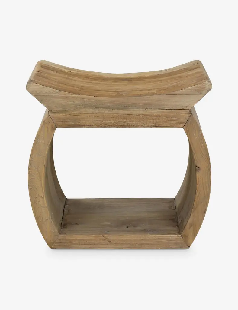 This unique accent piece provides two-fold functionality. Perfect in a reading nook, this reclaimed elm wood item acts as a stool or low table, and the shelf below provides storage for magazines and books.