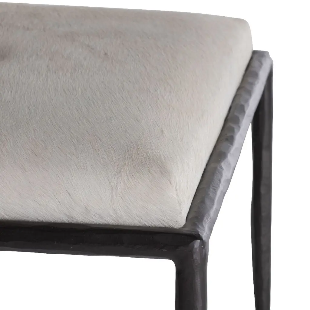 Devoe Hair-on-hide Leather Stool, Black/ivory