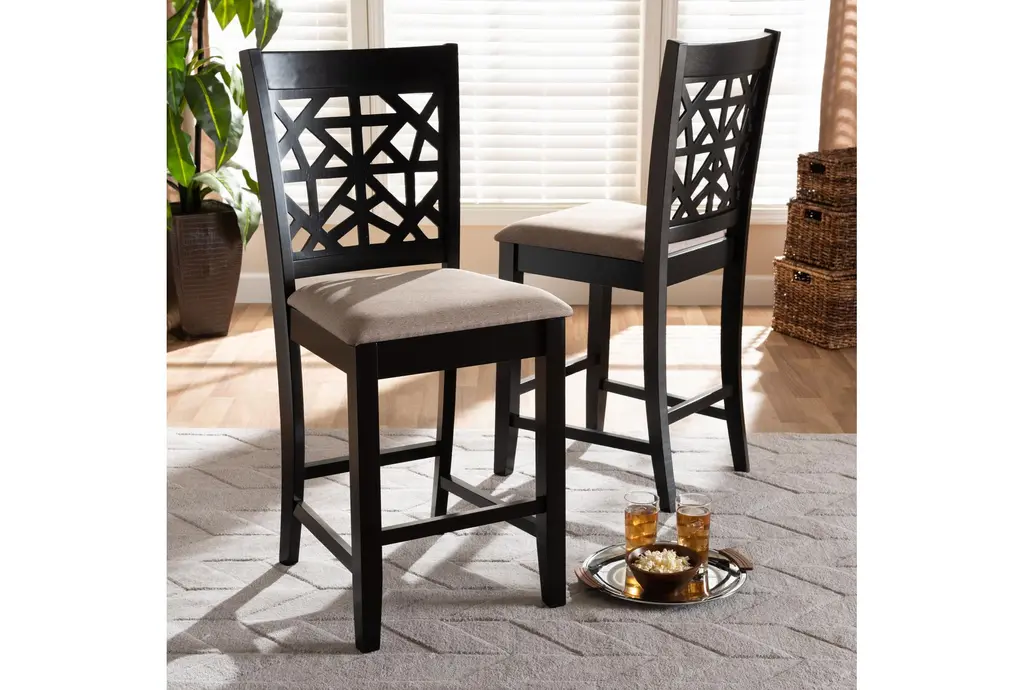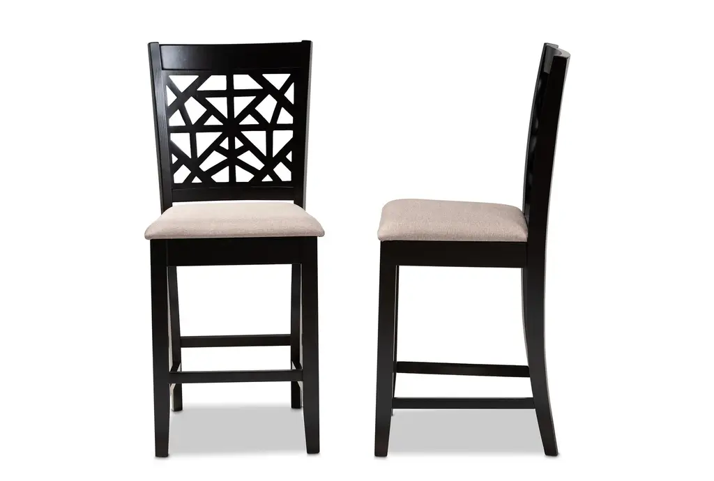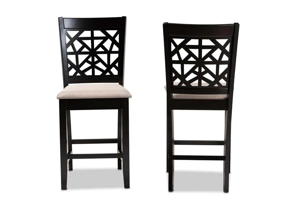 Devon Modern Sand Fabric Upholstered Espresso Brown Wood Square 25" Counter Height Stool Set Of 2 | Oak | Armless