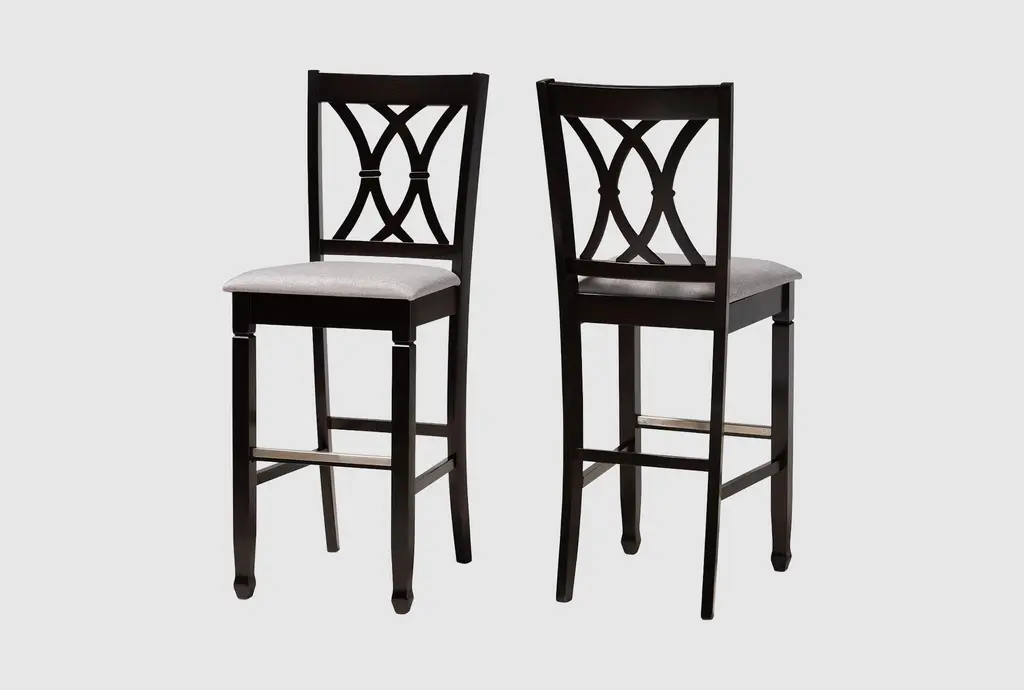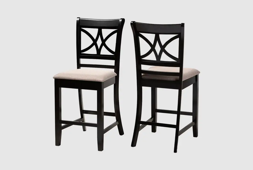 Enhance your dining or kitchen space with the Devon Modern Sand Fabric Upholstered Espresso Brown Wood Square 25" Counter Height Stool Set of 2. These stools feature a stylish mid-century modern design that complements any decor. The sand-colored fabric upholstery and espresso brown oak wood frame create a sophisticated and inviting look.