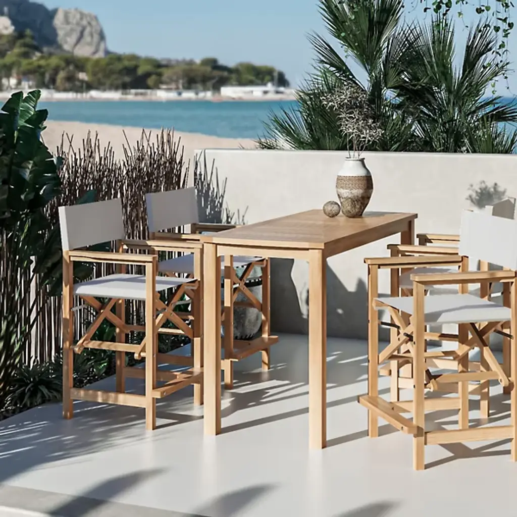 Guide the comfort and style of your outdoor living space with this Hollywood-inspired piece. You don’t have to be on set to enjoy an empowering seat stop the Director Teak Outdoor Counter Height Stool from Hi Teak. Wherever the scene at your home is taking place, this lightweight and foldable stool follows. Using traditional techniques, each piece is made from strong, weather-resistant teak wood. The wood is the star of the show, guiding your eyes with a golden honey color and deep grain texture. Sling fabric hugs your back and bottom as you nestle inside. Whether you’re out on a long shoot or simply relaxing on your patio, the fabric keeps you cool with its breathable construction.