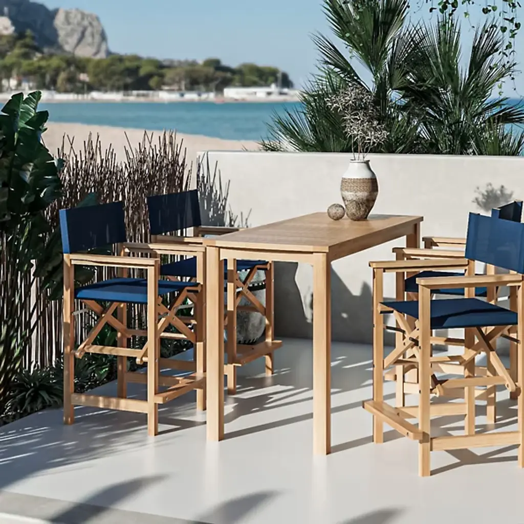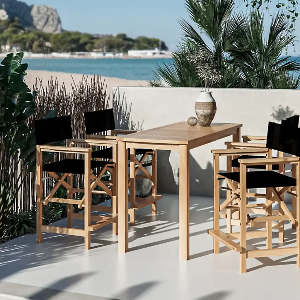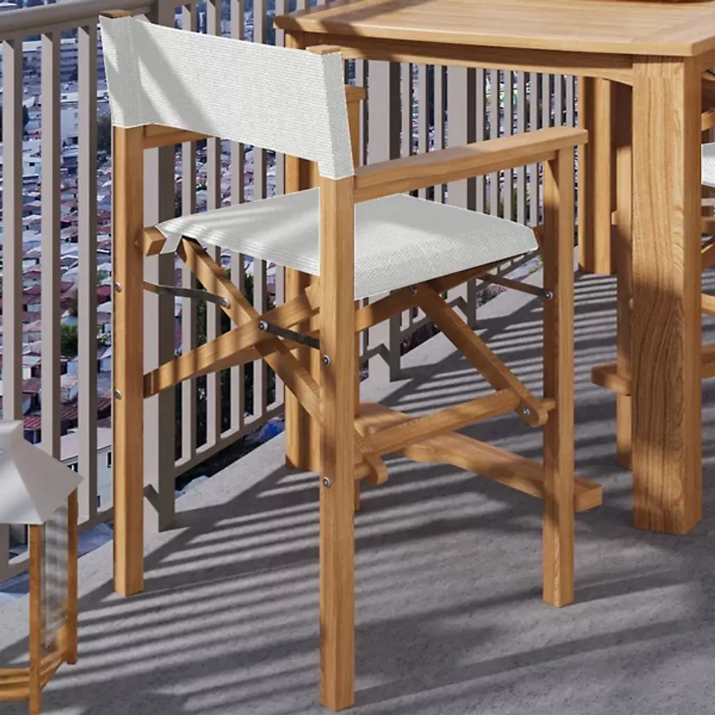 Guide the comfort and style of your outdoor living space with this Hollywood-inspired piece. You don’t have to be on set to enjoy an empowering seat stop the Director Teak Outdoor Counter Height Stool from Hi Teak. Wherever the scene at your home is taking place, this lightweight and foldable stool follows. Using traditional techniques, each piece is made from strong, weather-resistant teak wood. The wood is the star of the show, guiding your eyes with a golden honey color and deep grain texture. Sling fabric hugs your back and bottom as you nestle inside. Whether you’re out on a long shoot or simply relaxing on your patio, the fabric keeps you cool with its breathable construction.