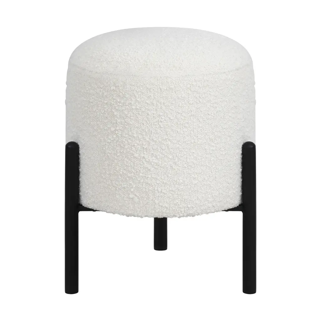 Our Dixon Stool is exactly what your living room is missing. Simple yet chic in design, this little ottoman features a comfortably firm cushioned interior, covered in cozy white boucle upholstery and supported by three black steel legs for a modern pop of contrast. Bringing a bit of textural interest along wherever it goes, Dixon would be perfect nestled next to a sofa or favorite armchair for whenever you need to put your feet up.