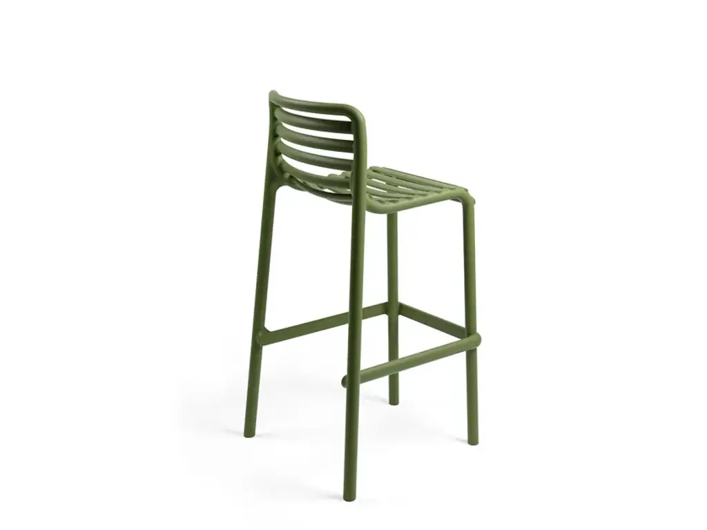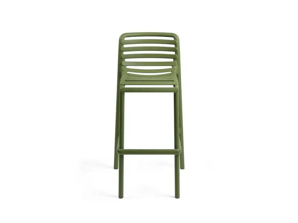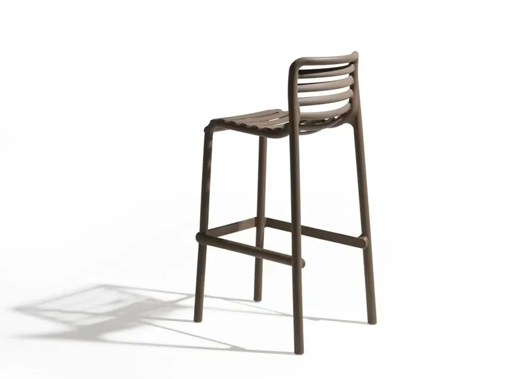 Doga Stool is the new fibreglass-reinforced polypropylene outdoor stool designed to complement the Doga collection. This comfortable and functional high stool for outdoor use in the contract sector, in the home or in all contexts where stools are required, can accompany counters, bar units and high tables.Inspired by the design that is characteristic of the entire collection, an interplay of open and closed spaces marked by a sequence of horizontal slats, Doga Stool is a sinuous S-shaped stool that enhances its round silhouette, echoed by the rounded shapes of slats and corners. The outcome is an ergonomic and relaxing support for the body with a distinct aesthetic character, highlighted by the comfortable footrest detail.Lightweight, colourful and versatileIts new, lightweight design also features an effect of remarkable plasticity between the frame and the tubular coupling, which is finely crafted so as to avoid any hint of discontinuity. Handy, stackable, easily sanitised and fully recyclable, Doga Stool is available in a wide range of Doga colours, from Bianco, Antracite and Tabacco, Cappuccino and Marsala, to the green shades of Menta, Pera and Agave.Doga is an outdoor furniture collection consisting of chairs with and without armrests, a lounge chair and a monobloc low table made of fiberglass resin, all inspired by a slatted design, given a contemporary twist.