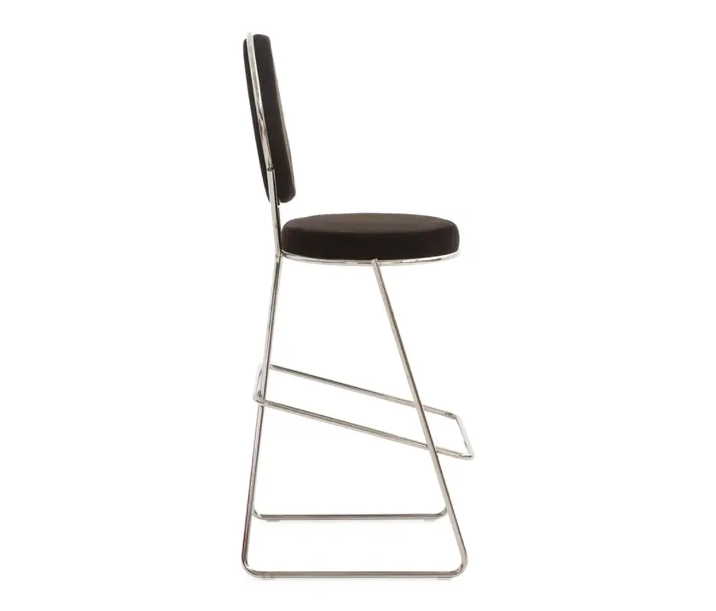 Double Zero stool has a frame in tubular steel with polished black chrome or gold chrome finish. Seat and back are injected flame-retardant polyurethane foam over plywood panel; on polyethylene glides. Available in fabric or leather. Double collection covers are not removable.Two circles, two elementary modules grafted into a construction geometry of art deco inspiration, openly communicate the tendency towards maximum formal simplification. This is the prelude to top-quality industrial production, an elegant economy of volumes expressed by the possibility offered by the chromed steel frame to structure the design into a complete seating family. Thus a chair and a stool are born, with and without armrests, with the addition of a small two-seater sofa, a sophisticated formal evolution dictated by good taste and class. This is a return to order, a transition towards a simultaneously luxurious and synthetic language.