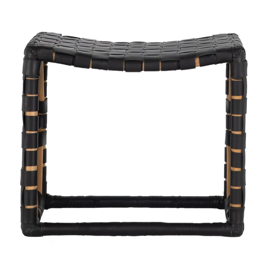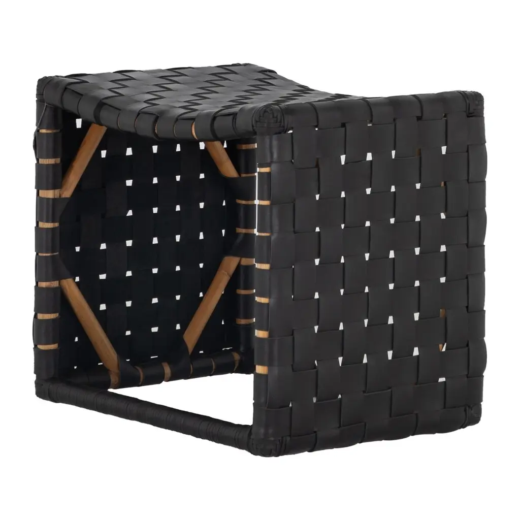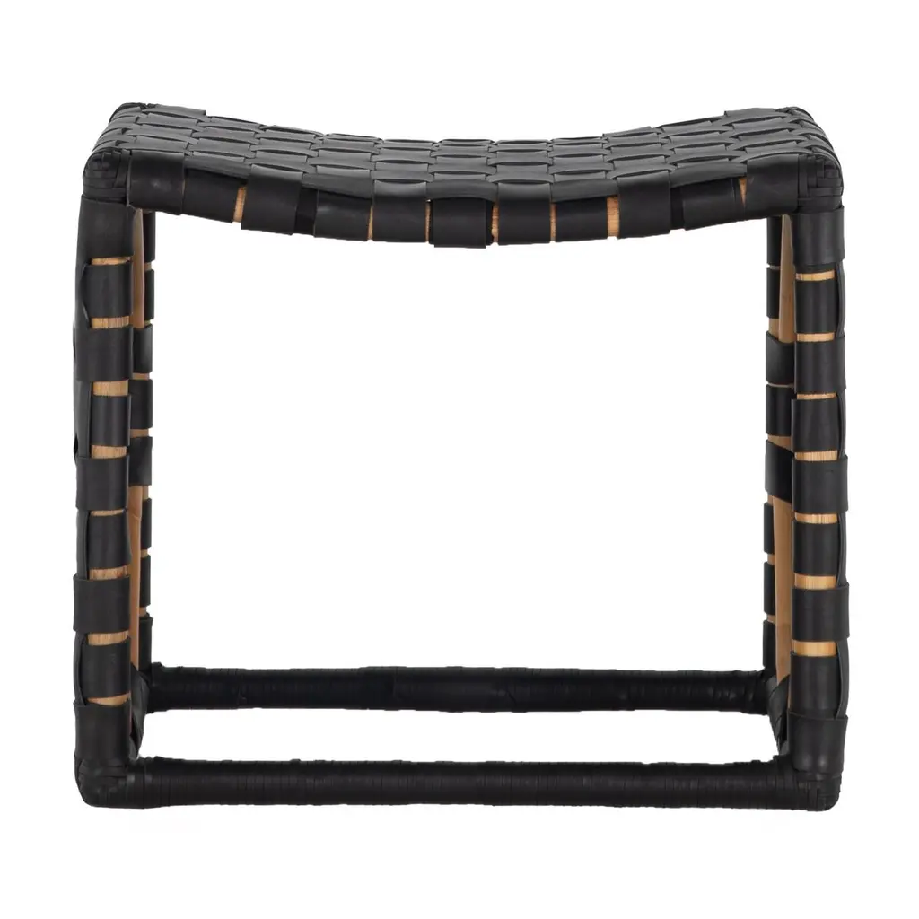 Dover Rattan Basketweave Accent Stool, Black Leather