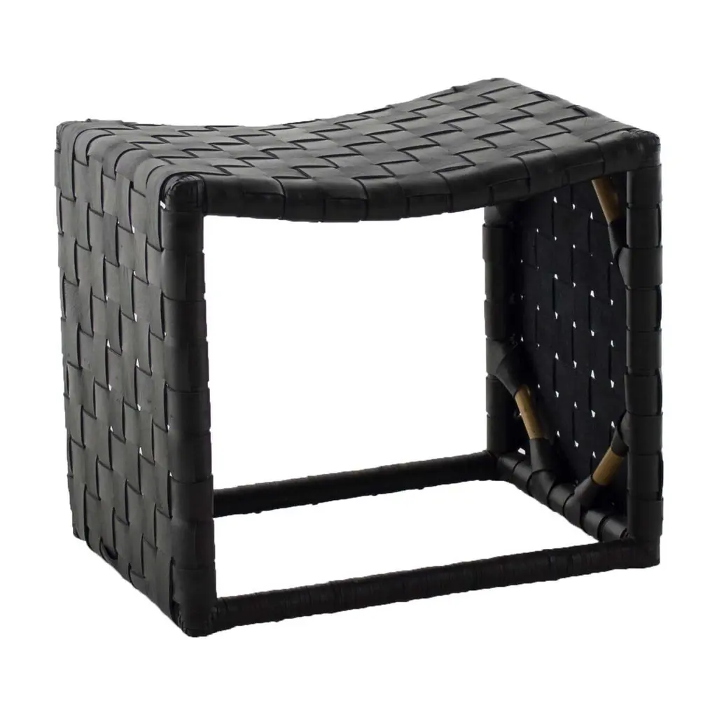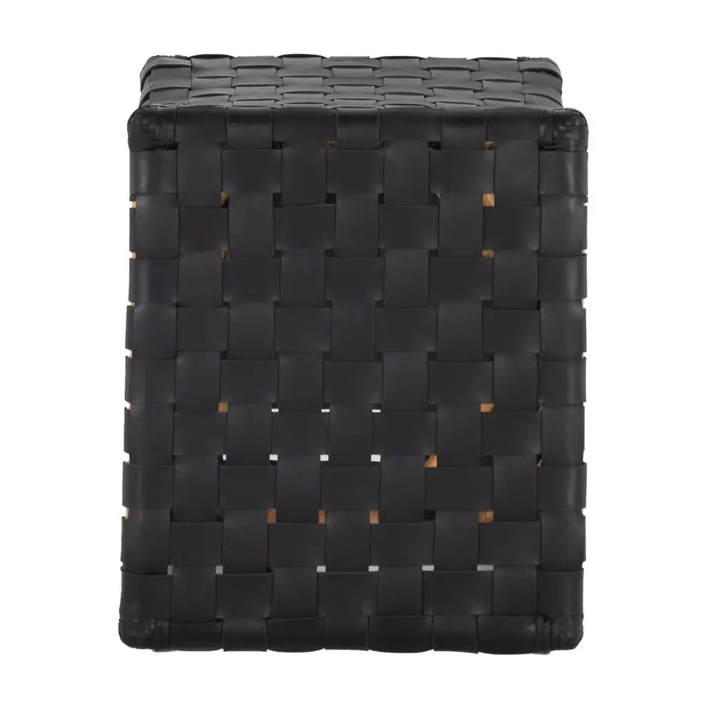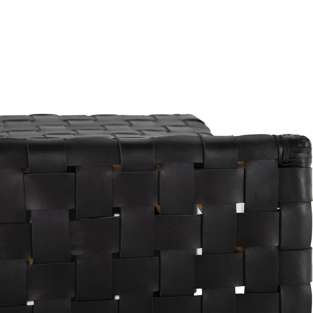 Dover Rattan Basketweave Accent Stool, Black Leather