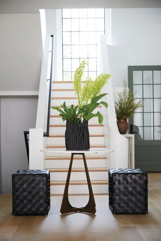 The Dover Stool seamlessly combines contemporary design with artisanal craftsmanship. Its unique handwoven pattern offers a comfortable seating option that waterfalls down the sides of the stool, making it a perfect fit for various interiors. From living rooms to home offices, it can be used as a stylish accent piece or a functional seat, standing out with its chic design and robust construction.