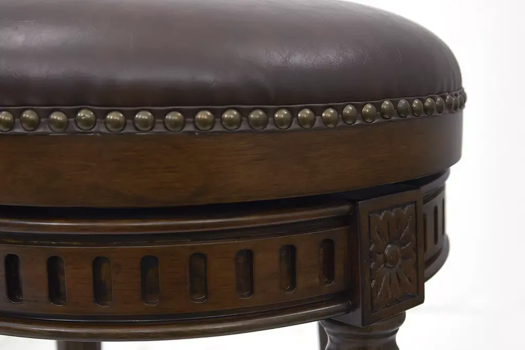 Recreate the experience of a lavish evening out with our Draper backless counter-height stool. Your choice of a distressed walnut or allegro grey finish will complement plush upholstery, luxurious nailhead trim and medallion inlays for elegance paired with casual comfort.