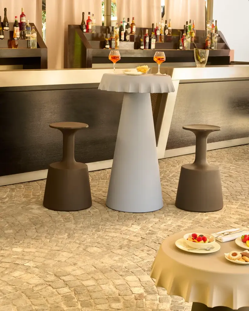 Drink is a design item with a double personality: it is a bar high stool but also an ice bucket, it depends on how it is reversed. Designed by Jorge Najera, Drink reminds a glass shape, and it is ideal to furnish terraces, gardens, living in private houses, contract and events settings, in an unusual and funny way.