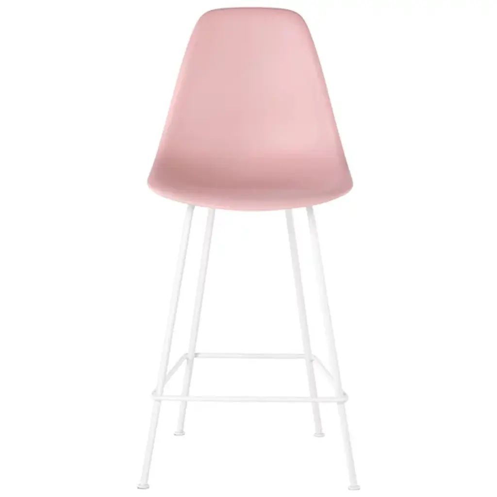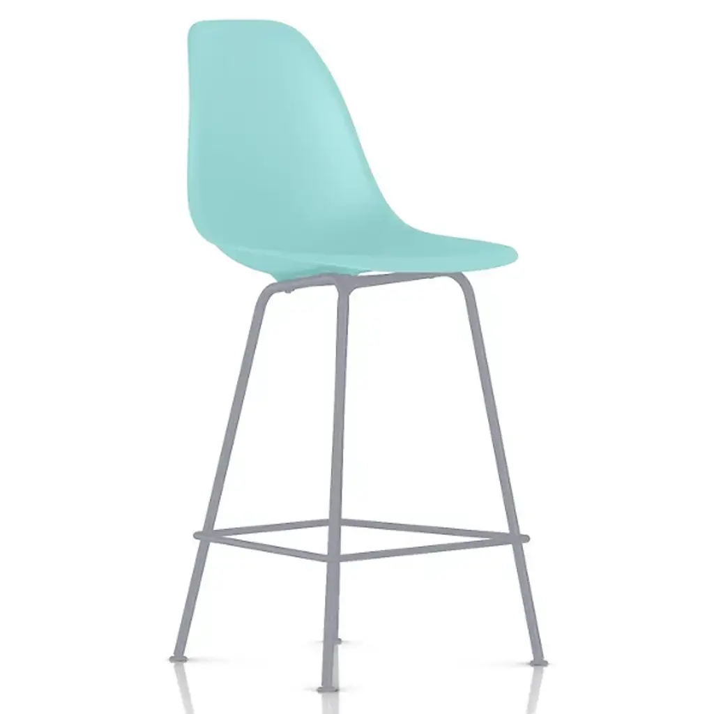 Designed by the legendary Charles and Ray Eames, the Eames Molded Plastic Stool by Herman Miller features a sleek, sophisticated design with playful colors. Originally designed in 1950, the Eames plastic stool has an appearance that is timeless, yet modern. Its recyclable polypropylene seat sits on top of 4 minimalistic legs—available in the finish of your liking. Available at counter height or bar height, Eames is ideal to place at a contemporary kitchen island, home bar, or breakfast nook.