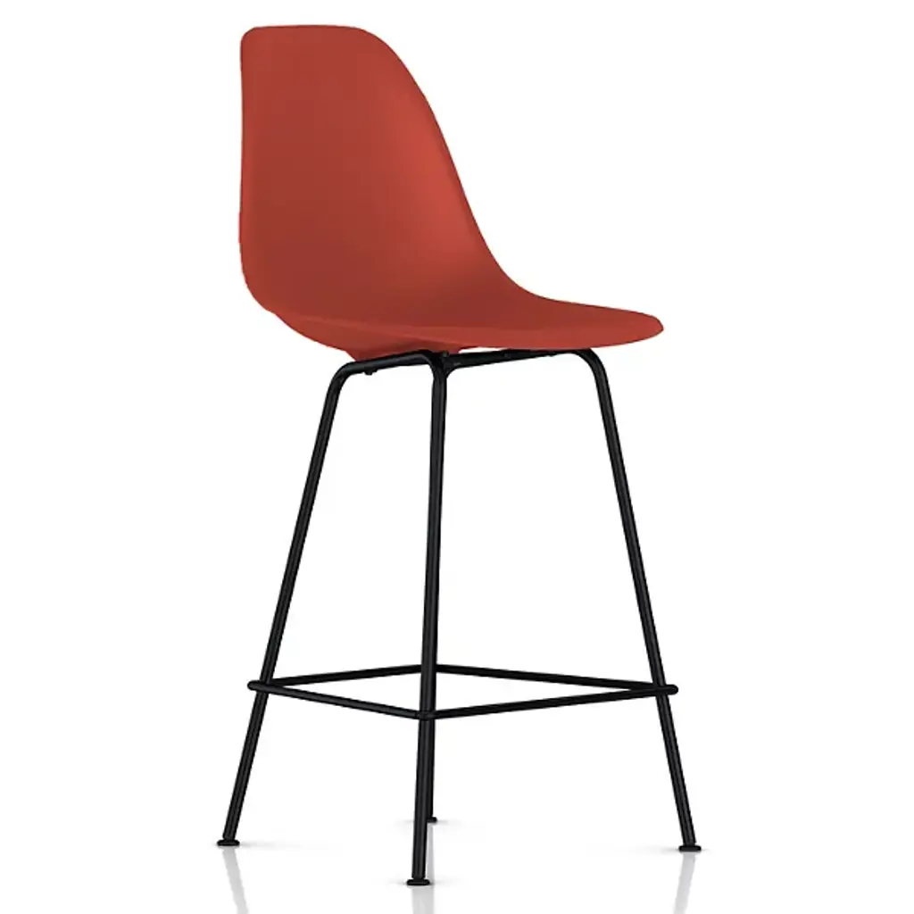 Designed by the legendary Charles and Ray Eames, the Eames Molded Plastic Stool by Herman Miller features a sleek, sophisticated design with playful colors. Originally designed in 1950, the Eames plastic stool has an appearance that is timeless, yet modern. Its recyclable polypropylene seat sits on top of 4 minimalistic legs—available in the finish of your liking. Available at counter height or bar height, Eames is ideal to place at a contemporary kitchen island, home bar, or breakfast nook.