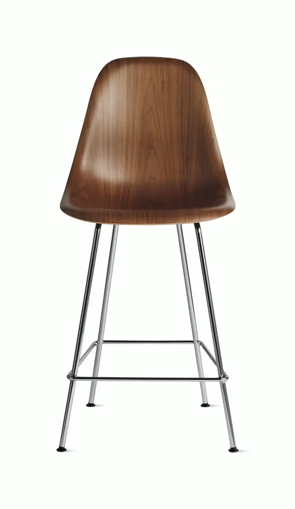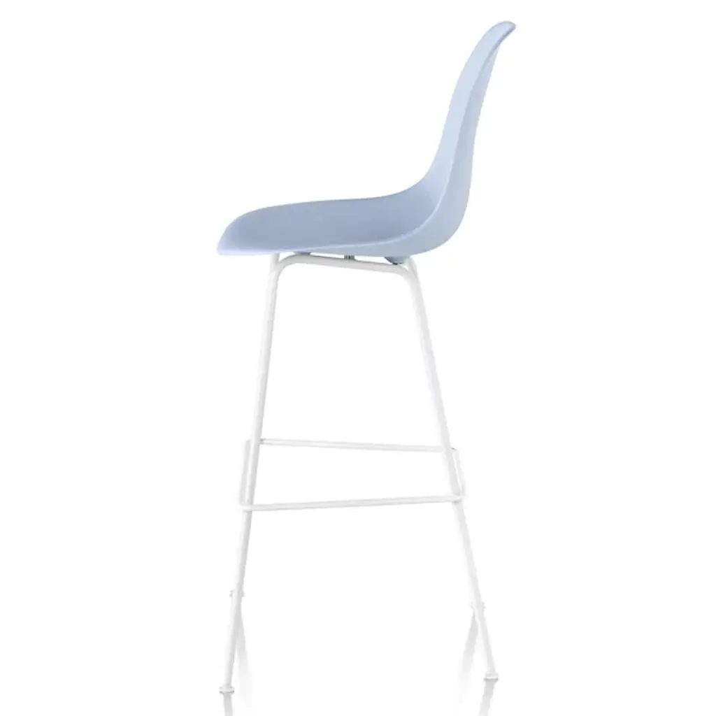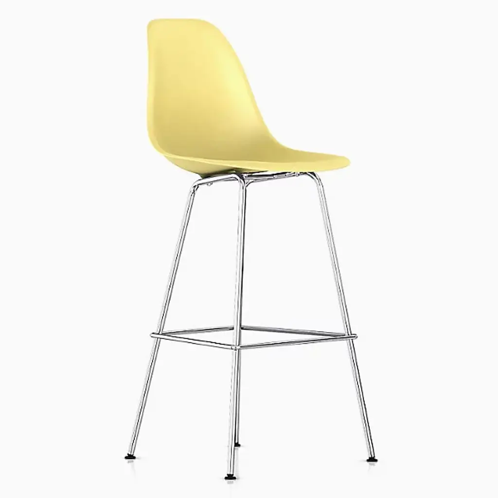 Designed by the legendary Charles and Ray Eames, the Eames Molded Plastic Stool by Herman Miller features a sleek, sophisticated design with playful colors. Originally designed in 1950, the Eames plastic stool has an appearance that is timeless, yet modern. Its recyclable polypropylene seat sits on top of 4 minimalistic legs—available in the finish of your liking. Available at counter height or bar height, Eames is ideal to place at a contemporary kitchen island, home bar, or breakfast nook.