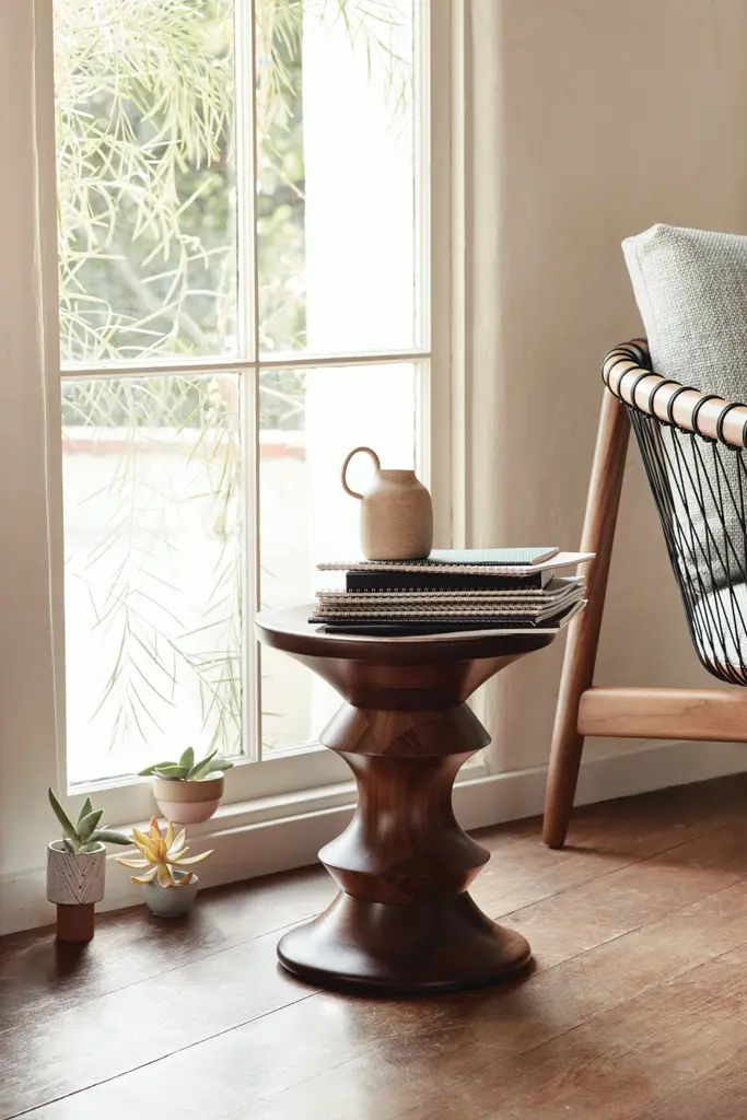 Originally designed by Charles and Ray Eames for the lobbies of the Time-Life Building in New York City, these sculptural stools are equal parts functional furniture and objet d'art. The Eameses outfitted their Pacific Palisades home with these modern walnut stools, and for a good reason. Two concave ends mean either side can serve as a stand for plants, a place to stack books, or a spot to sit. Choose from four distinctive shapes, or collect all four to use throughout your home.