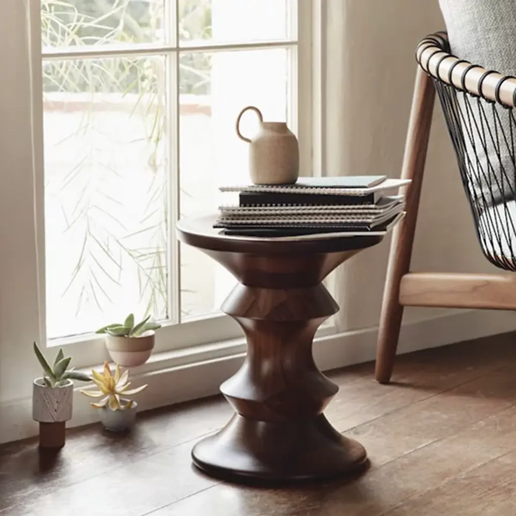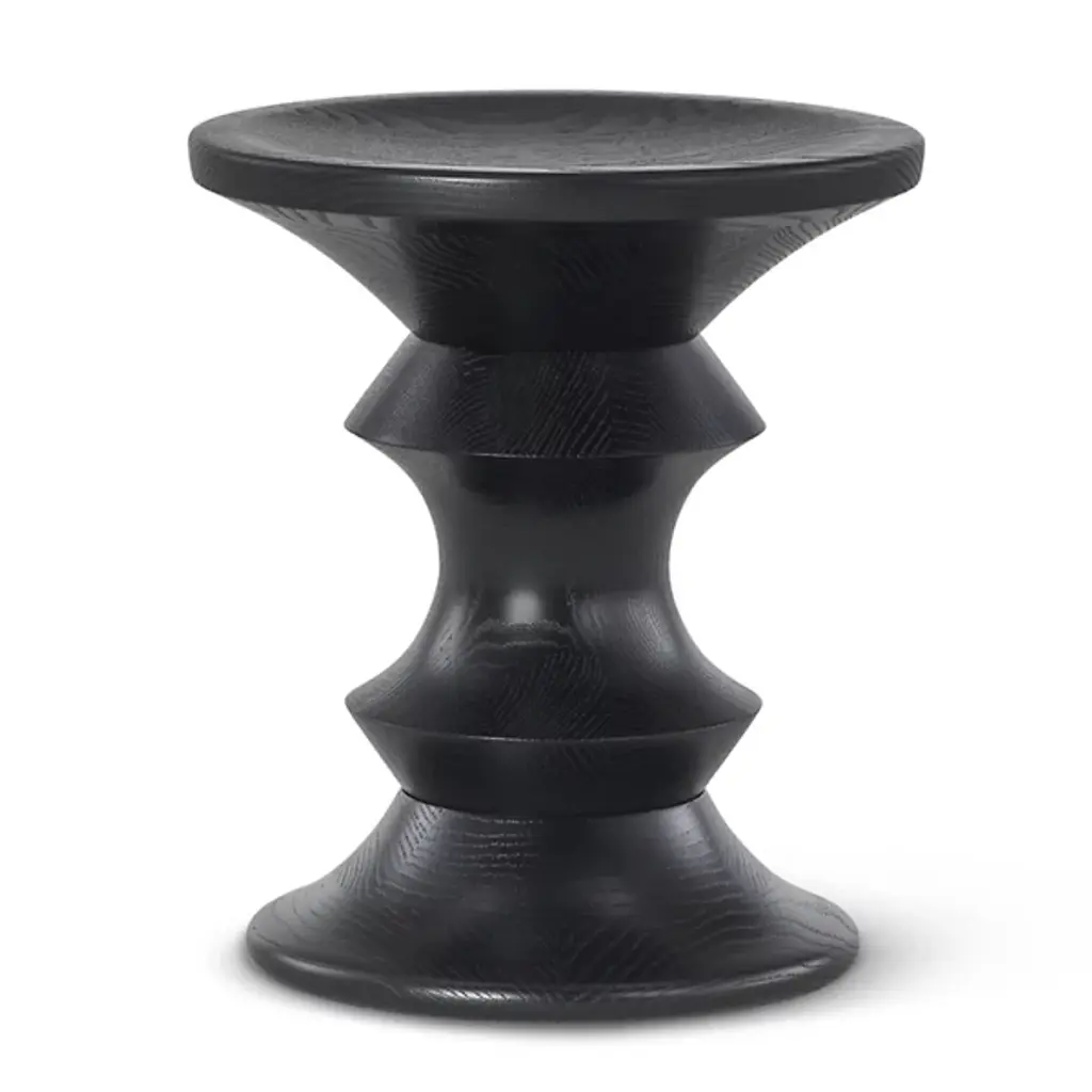 The Eames Turned Stool from Herman Miller is made from contoured, solid wood created using a process that keeps the flowing, organic woodgrain on full display. Charles and Ray Eames created this strong and flexible design for the lobby of the Time-Life Building in New York. It followed the Eameses to their Pacific Palisades home as both furniture and as an art object. Either side can be the top or the bottom, and both ends are concave, meaning they can retain planters or other small accessories while offering a steady seat.