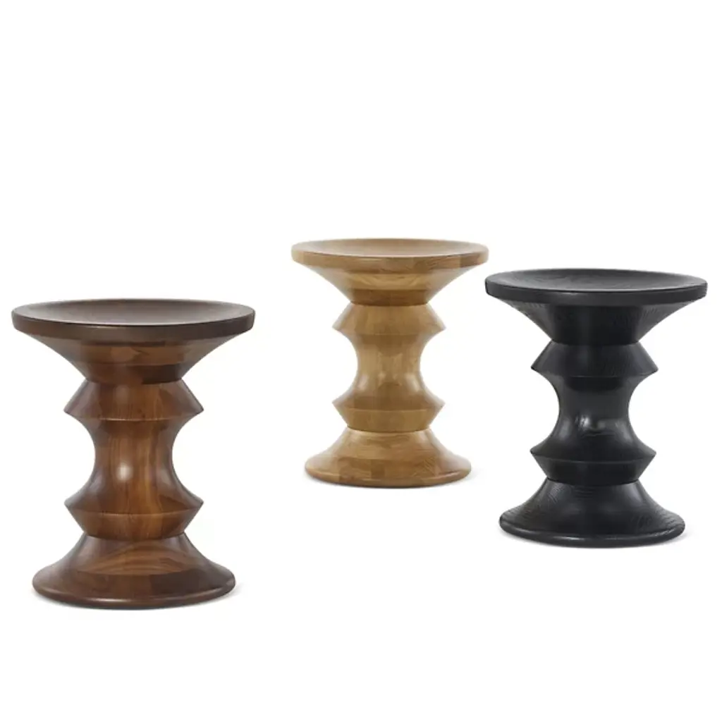 The Eames Turned Stool from Herman Miller is made from contoured, solid wood created using a process that keeps the flowing, organic woodgrain on full display. Charles and Ray Eames created this strong and flexible design for the lobby of the Time-Life Building in New York. It followed the Eameses to their Pacific Palisades home as both furniture and as an art object. Either side can be the top or the bottom, and both ends are concave, meaning they can retain planters or other small accessories while offering a steady seat.