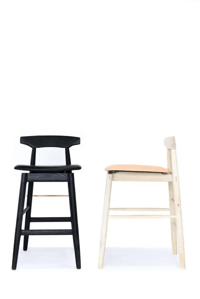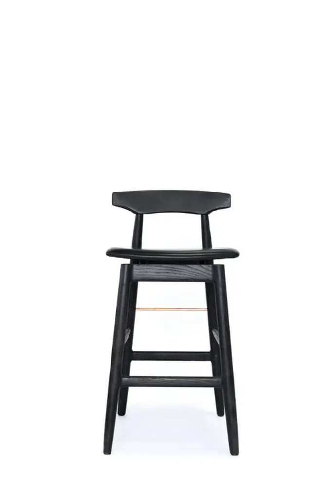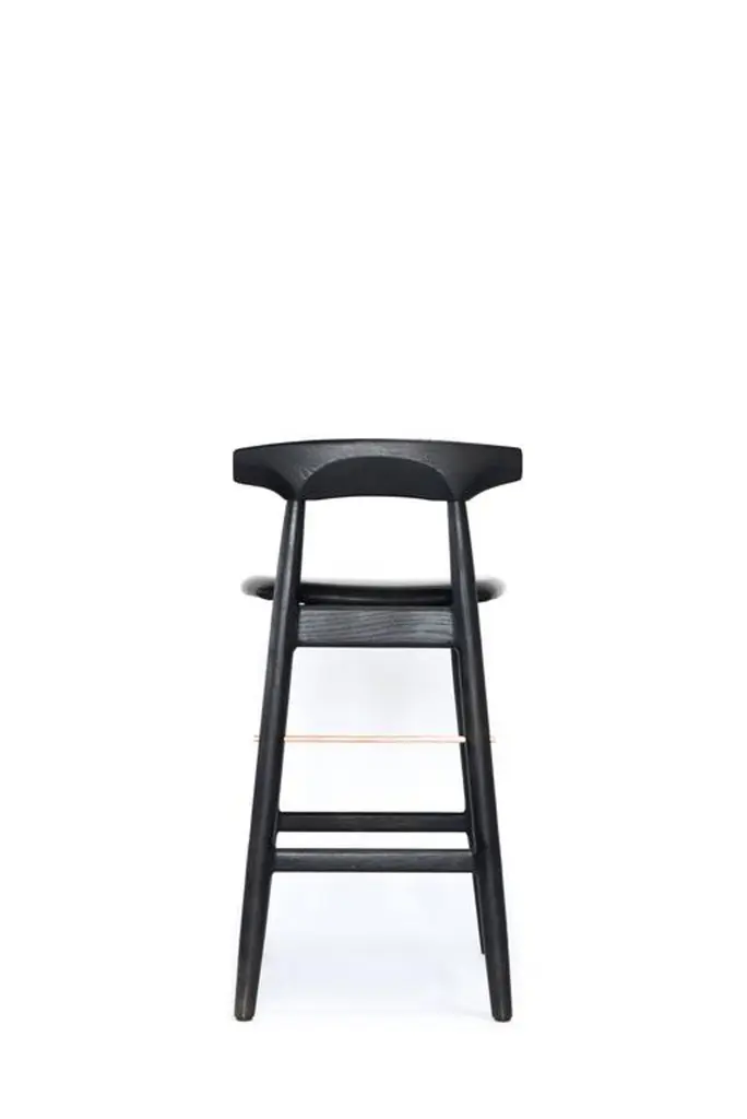 Ebonized Oak, Black Leather, And Copper Wood High Stool