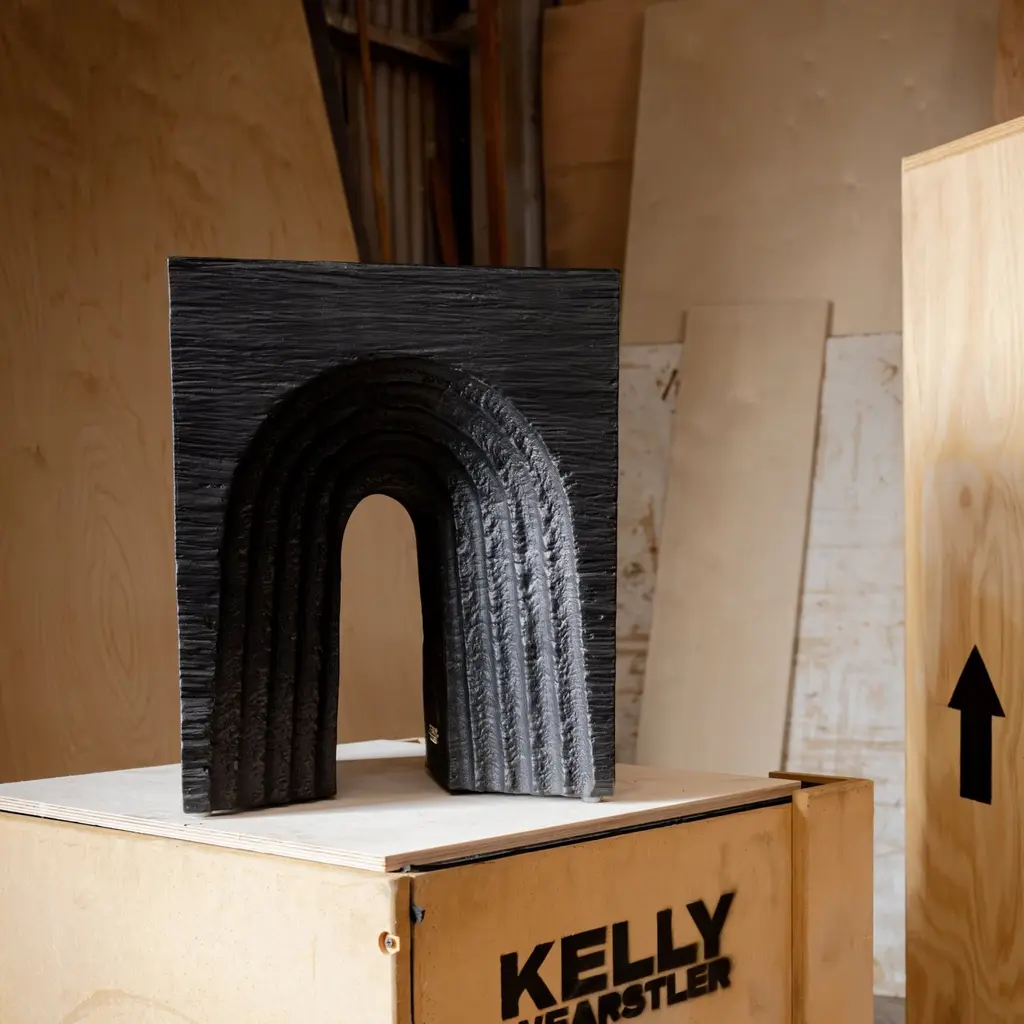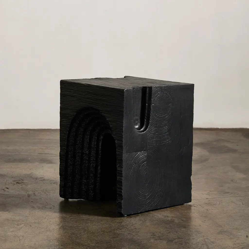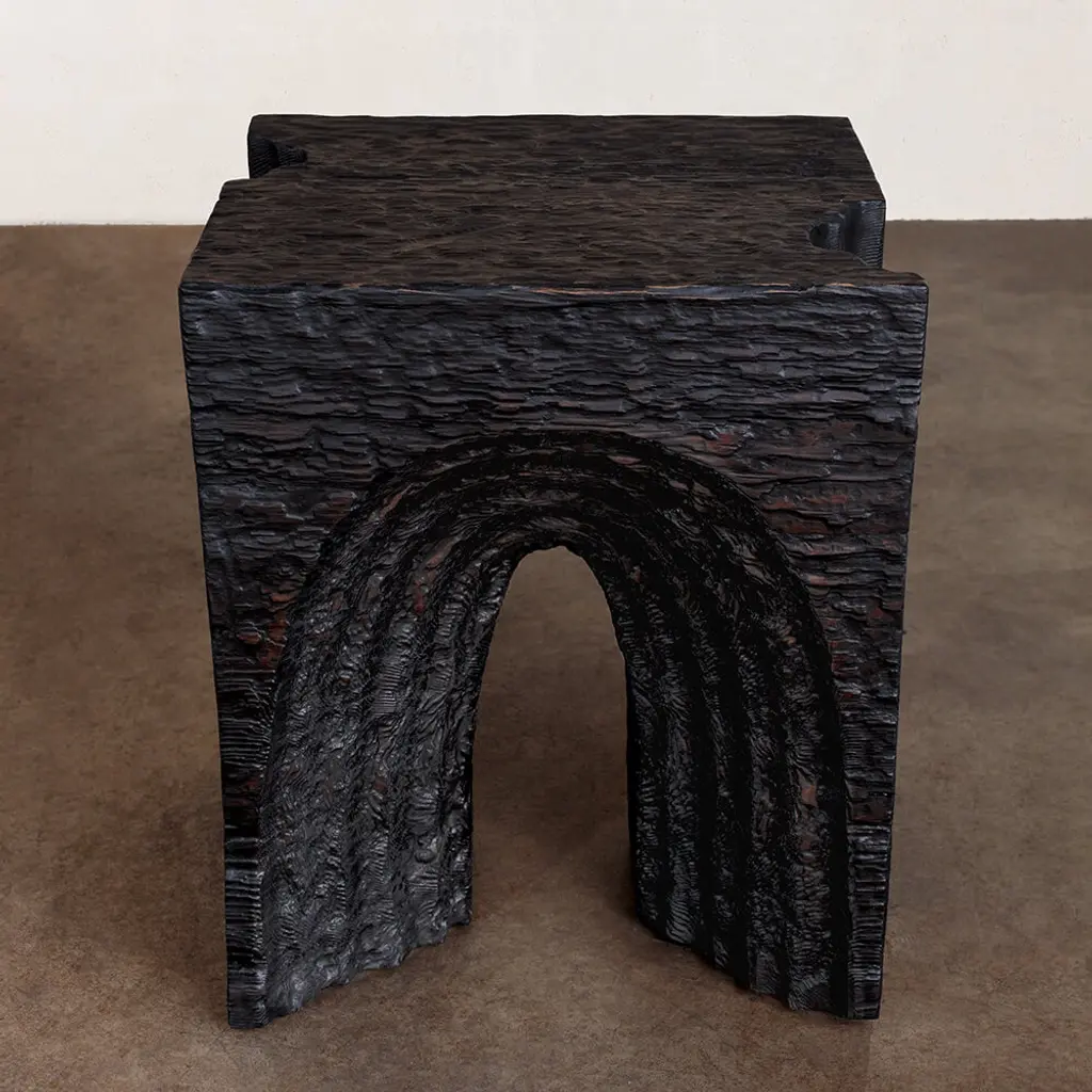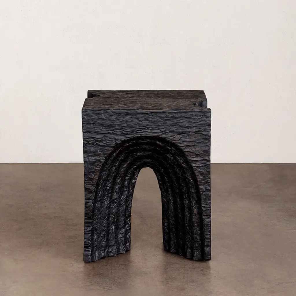 Featuring arched forms carved from a single monolithic mass of wood, the Echo Stool blurs the lines between modern art and functional décor. This sculptural stool or table is created by a local LA artisan from solid Douglas Fir and features a heavily hand-sculpted texture. Celebrating the unique qualities of wood, the Natural Finish accentuates its rich grain texture and warm tones while an Ivory Gesso finish exudes an air of timeless elegance, with its pristine white surface adding a touch of sophistication to any interior. An Ebonized Douglas Fir finish brings a sense of drama and depth into any interior with its deep, dark hue. This piece is available in either a Ivory Gesso, Natural or Ebonized Douglas Fir finish. Hand crafted in our Los Angeles workshop.