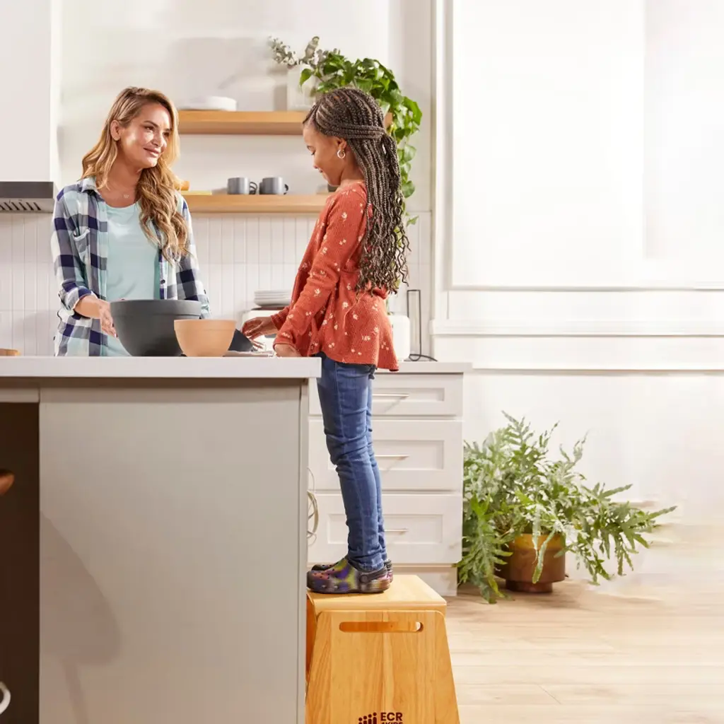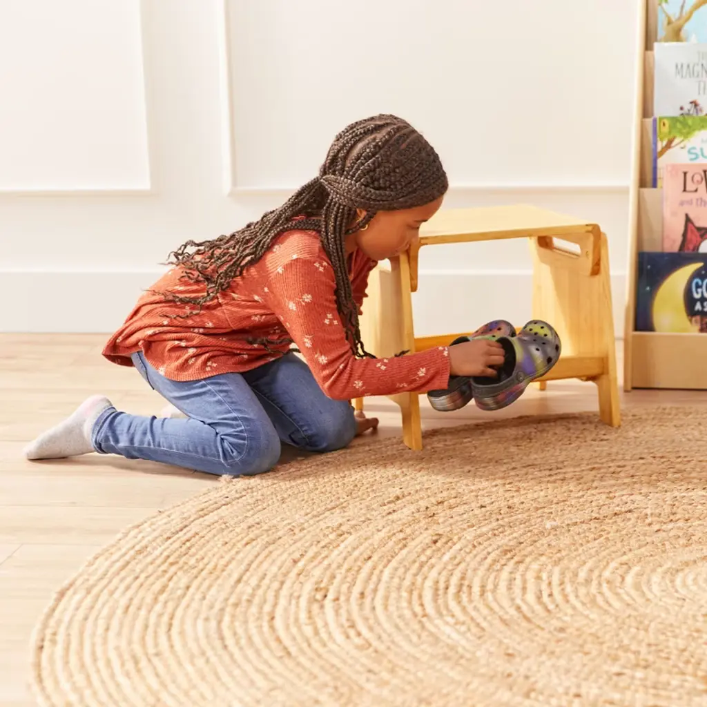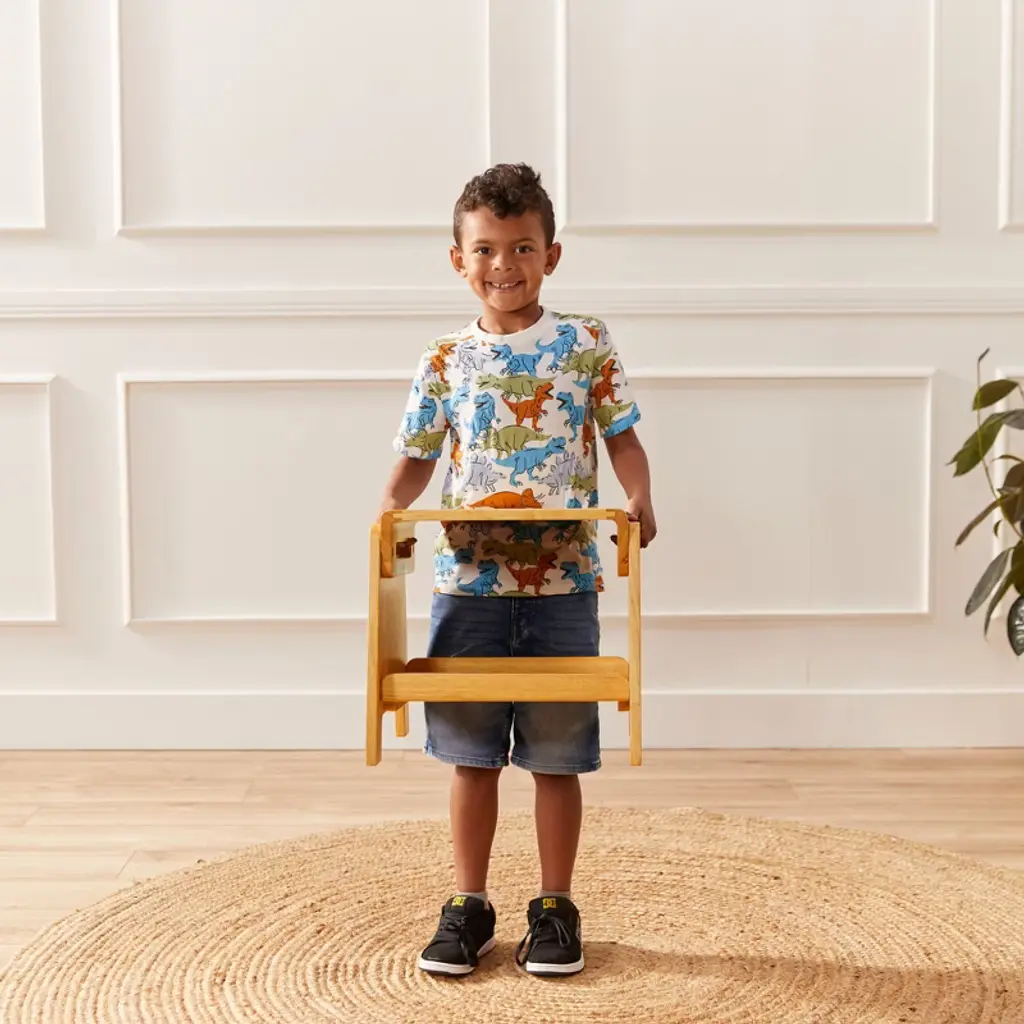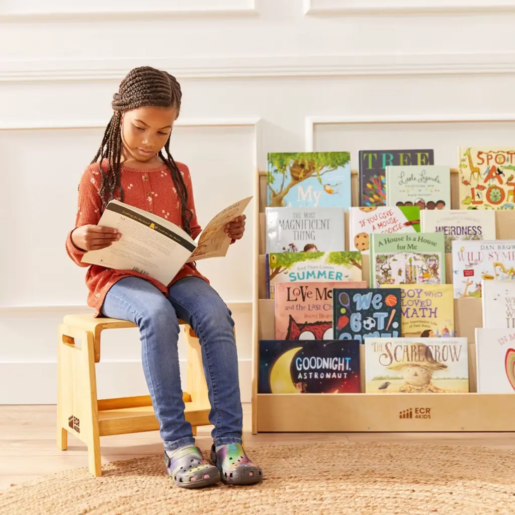 The ECR4Kids Sit or Step Stool is a 2-in-1 seat and step stool with convenient storage underneath. Use the kids’ bathroom stool to reach the sink to brush your teeth and wash your hands. Take it into the kitchen for a boost to help reach the countertop. Use it next to a bookshelf to offer children access and to select their favorites story. Place in a bedroom for little ones to put on socks and shoes. The versatile furniture can be assembled in two height options for different uses. The lightweight design has cut-out handles for easy transportation from room to room, offering a self-help “do it myself” solution. The footprint of this children's step stool is ideal for small spaces including daycares, apartment homes, and smaller playrooms. A shelf underneath offers storage for small items and features raised edges to prevent supplies from rolling out. Constructed from rubberwood with a durable finish sealing the wood surface and resisting scratching. A UV inhibitor helps furniture resist ultraviolet light and yellowing. Pair with ECR4Kids hardwood furniture to complete the set; sold separately.