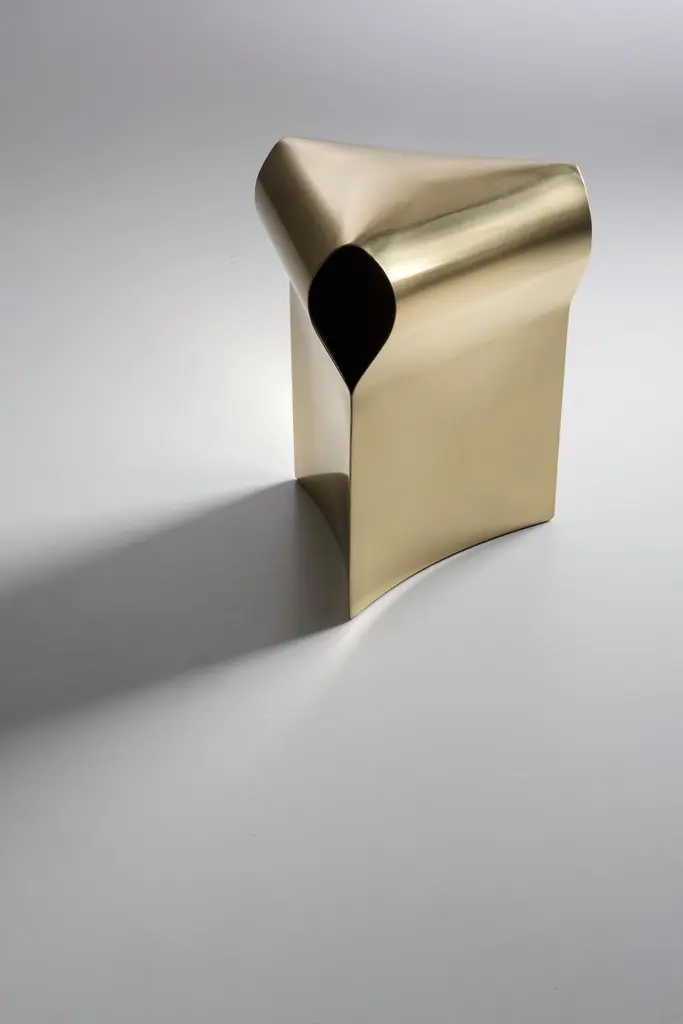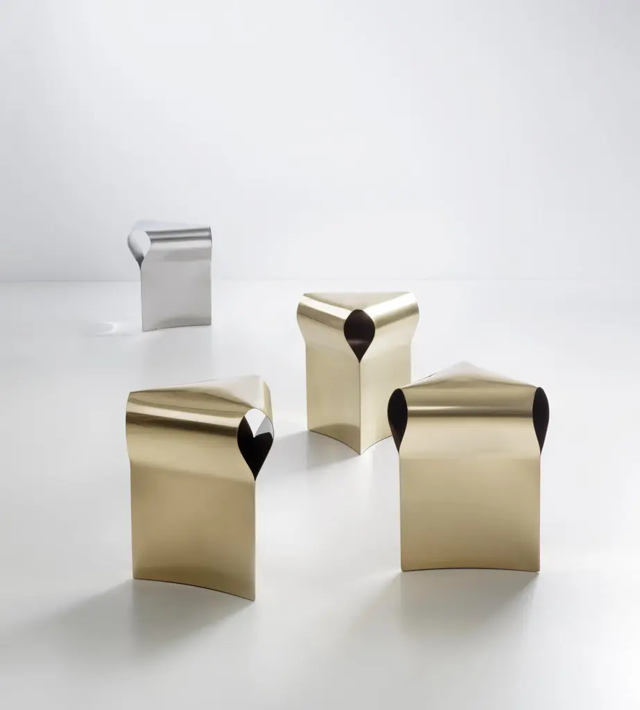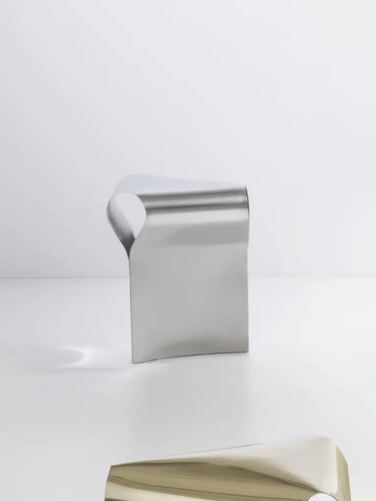 Efesto Stool by De CastelliDimensions: W 36 x D 42 x H 45 cmMaterials: Polished Stainless SteelOther versions are available, please contact us for any request.More than mere furniture, the Efesto stool is a sculpture for the home which exalts the brand’s manufacturing capabilities: by curving and bending sheet metal, brass is manually shaped and hammered to create its unique triangular cross section. The polished finish further highlights its sinuous shape. Entirely without mechanical joints, Efesto’s ability to support heavy weights is created through its meticulously designed structure. Technical savoir-fair and the intrinsic qualities of brass elevate it beyond a functional object to a unique, sophisticated design piece.DE CASTELLI“HARD COUTURE”Faithful to its decision to reinstate the special role of metal in design and experimentation, De Castelli infuses artisan ideas and workmanship into industrial processes, leading to entirely original results. The encounter with design inspires an approach to materials founded upon respect for their potential, be it hidden or obvious, which emerges slowly in a collection of pieces that, despite being part of a series, remain unique.Unique not only for the hand that has created them, but also for the singular cultural path that focuses on the aesthetic (and not just practical) value of the primordial material with which De Castelli shapes living spaces.A BESPOKE APPROACHEach object, even in the repetition of form, is a creative act in and of itself, one that incorporates a heritage of constantly-evolving expertise and research. The equation that relegates ‘cold’ metals to the margins of furnishing projects is thus overturned, bringing iron, brass and copper, in their infinite variations and finishes, to the centre of an entirely renewed stage, allowing them to finally shine with their own light.SUSTAINABILITYDe Castelli has always been committed to making the entire production cycle increasingly sustainable, aware that metal, the material with which its business identifies itself, is precious and must be treated with care, without waste.PEOPLE FIRSTThe wide spaces of the De Castelli headquarters in Crocetta del Montello (TV) allow those who work to enjoy environments where order, cleanliness and safety are always maintained and guaranteed. An attitude of attention and respect for people that has led to the shared ethical code.