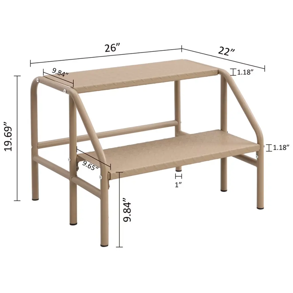 This heavy-duty metal step stool from eHemco is designed for maximum durability and safety. With a 2-step design and a load capacity of up to 1100 pounds per step, it's perfect for reaching higher shelves, accessing tall cabinets, or performing tasks in industrial settings. The non-slip surface and sturdy metal construction ensure a stable and secure platform, while the compact size of 26 inches wide, 22 inches deep, and 19.69 inches tall makes it easy to store and transport. Assembly is required but straightforward, allowing you to quickly set up this versatile step stool for your everyday needs.