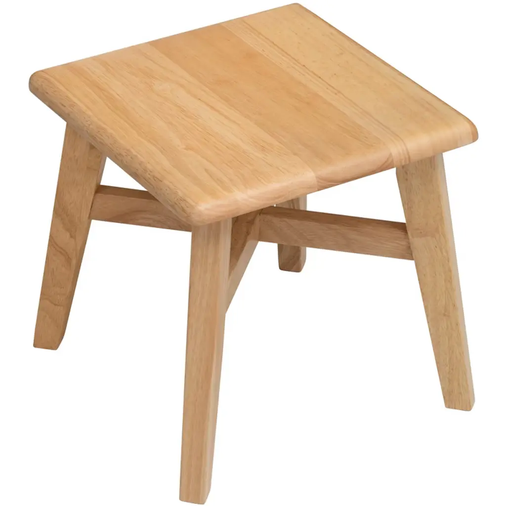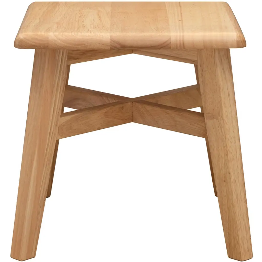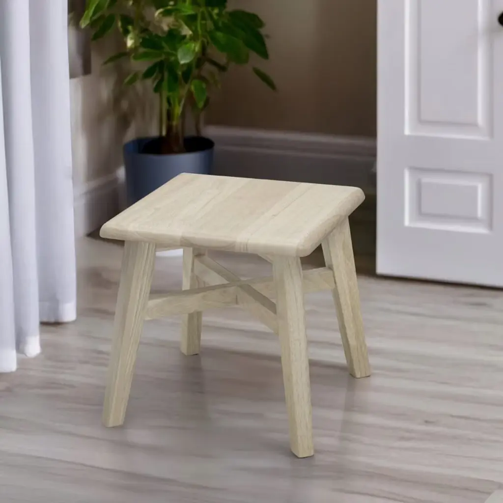 Elevate your living space with this beautifully crafted wooden stool that combines classic design with modern functionality. The solid wood construction showcases natural grain patterns and a smooth, refined finish that adds warmth to any room. Its sturdy four-leg design features cross-bracing support for enhanced stability. The compact size makes it versatile as a footstool, side table, or extra seating option. The clean lines and angled legs create an appealing silhouette that complements both contemporary and traditional decor styles. Perfect for use in living rooms, bedrooms, or as an accent piece in any corner of your home. The natural wood finish allows for easy maintenance while highlighting the material's inherent beauty.