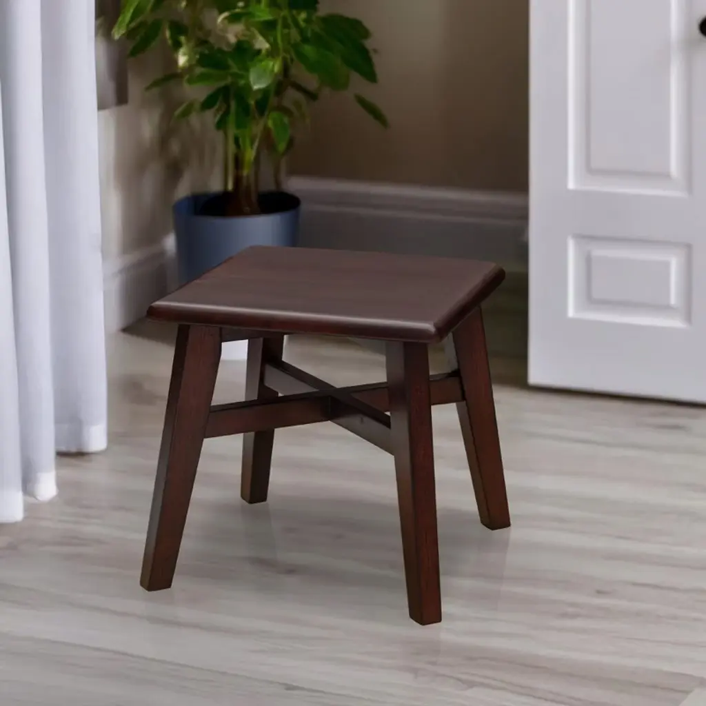 Elevate your living space with this beautifully crafted wooden stool that combines classic design with modern functionality. The solid wood construction showcases natural grain patterns and a smooth, refined finish that adds warmth to any room. Its sturdy four-leg design features cross-bracing support for enhanced stability. The compact size makes it versatile as a footstool, side table, or extra seating option. The clean lines and angled legs create an appealing silhouette that complements both contemporary and traditional decor styles. Perfect for use in living rooms, bedrooms, or as an accent piece in any corner of your home. The natural wood finish allows for easy maintenance while highlighting the material's inherent beauty.