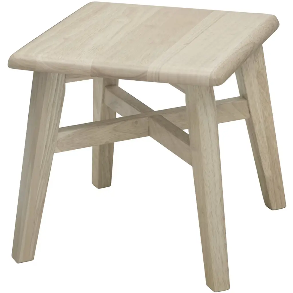 Elevate your living space with this beautifully crafted wooden stool that combines classic design with modern functionality. The solid wood construction showcases natural grain patterns and a smooth, refined finish that adds warmth to any room. Its sturdy four-leg design features cross-bracing support for enhanced stability. The compact size makes it versatile as a footstool, side table, or extra seating option. The clean lines and angled legs create an appealing silhouette that complements both contemporary and traditional decor styles. Perfect for use in living rooms, bedrooms, or as an accent piece in any corner of your home. The natural wood finish allows for easy maintenance while highlighting the material's inherent beauty.