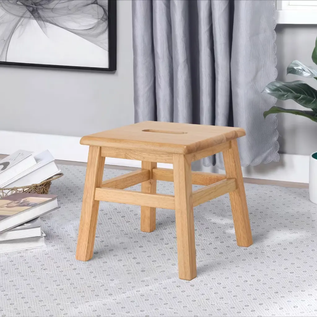 Reach onto higher shelves, inside a tall cabinet and more with ease using this Hardwood Footstool. It's made of solid wood and features an attractive finish that complements many home decors. The footstool has a square top that provides plenty of room for standing and can support children and adults alike. It also features a built-in cut-out hole in the center for convenient lifting and transport. Plus, the versatile design allows for multi-purpose use such as an extra seat or a stand for holding things like plants. It comes to you fully assembled and ready for use.
