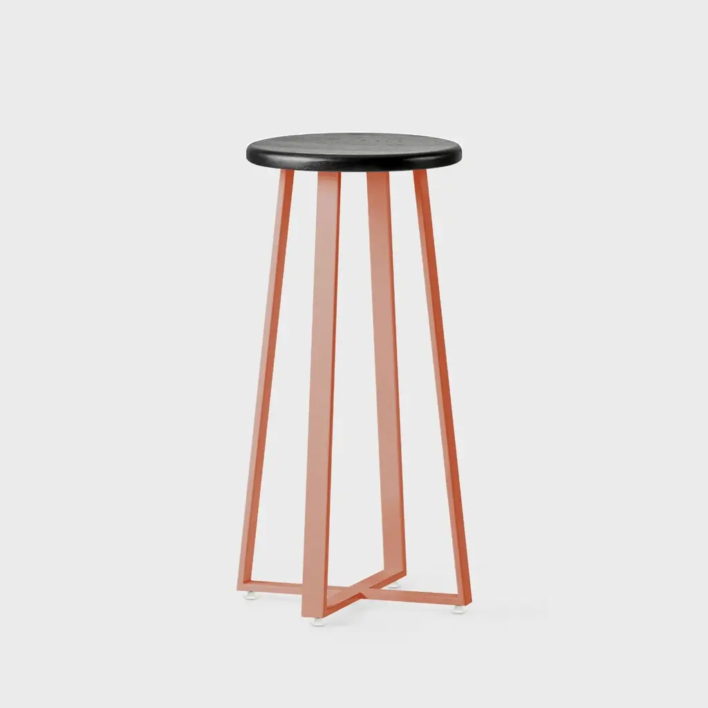 Interlocking angles of hot-rolled steel create the foundation for this modern piece, made by hand in a West Michigan workshop. Use it as a side table, plant stand, step stool, desk seat, or display surface for magazines or stacked books.