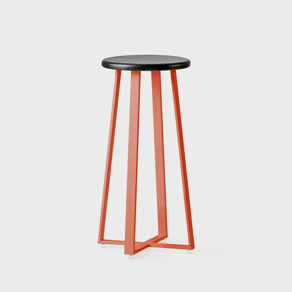 Interlocking angles of hot-rolled steel create the foundation for this modern stool, made by hand in a West Michigan workshop. The solid wood seat offers an inviting place to perch, from a home office desk to a kitchen island.