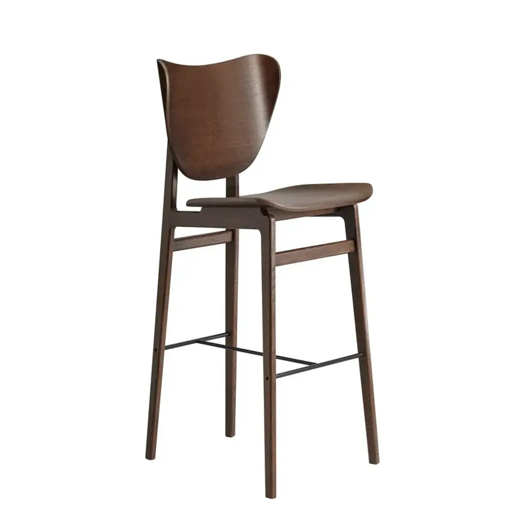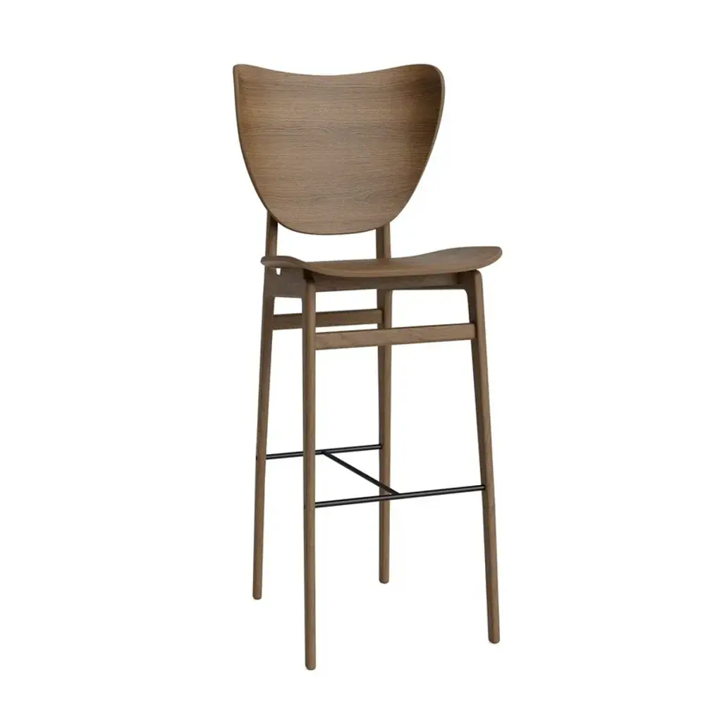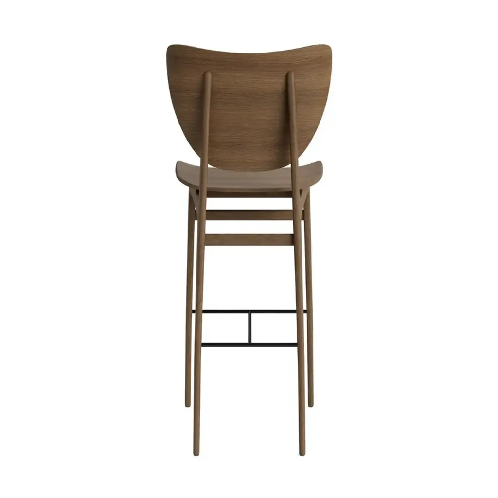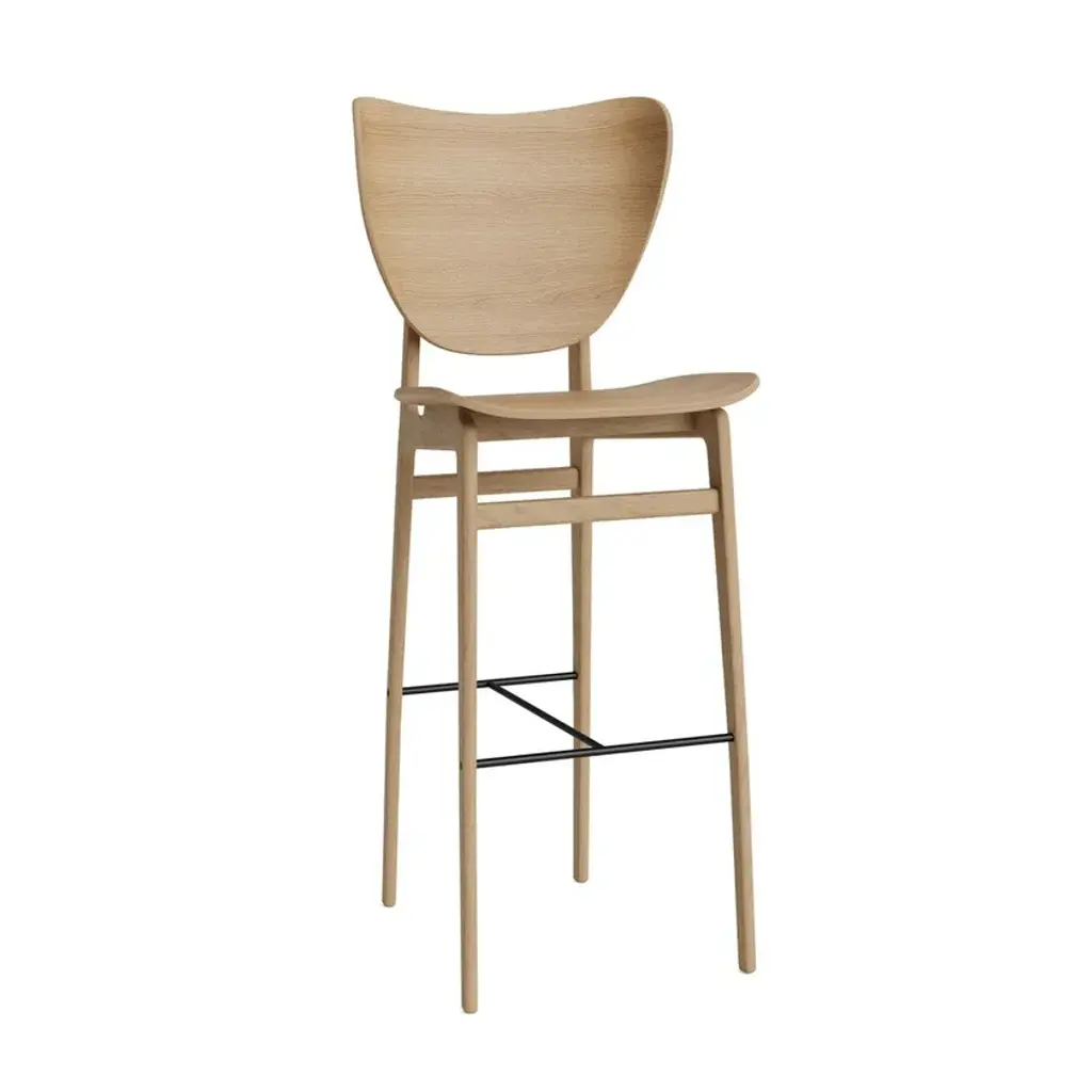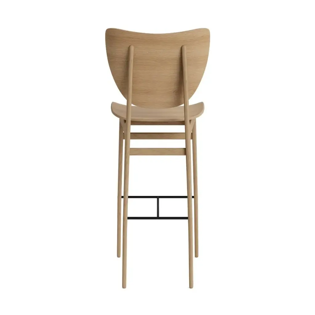 Elephant Bar is a high oak stool with footres.With a gently curved back with the same soft curve as the Elephant series and a sculptural wood base, the Elephant Bar Chair takes comfort to a higher level thanks to a sculptural, comfortable seat and replaceable upholstery plates.Hand-crafted solid oak frame. Seat and back laminated oak veneer. Water-based clear lacquer. Made in Latvia.