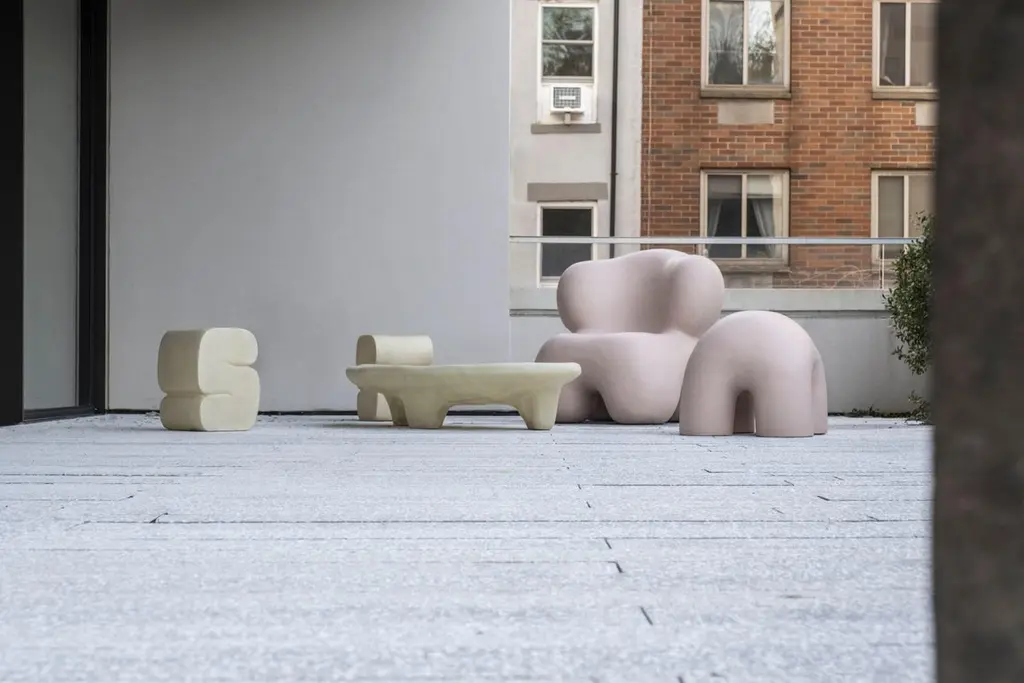 Elephante stool IV - Studio NoonUnique pieceSignedDimensions: 24” H x 24” W x 24” DMaterial: Pigmented cementNoon is a Philadelphia based collaboration between designer/architect Nargiz Kazieva and artist Thomas Pontone.The collection “Luna” is an ongoing exploration into the quality of roundedness and its relationship to materiality and visual weight.