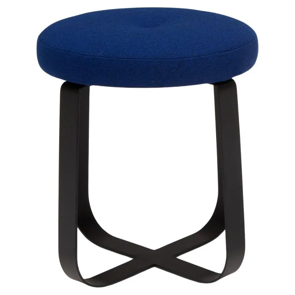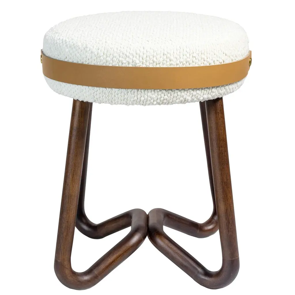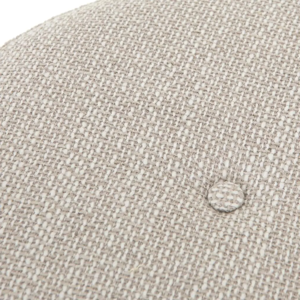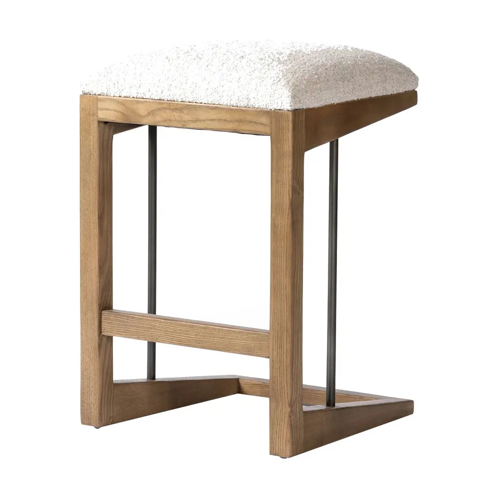 Neutral hues and lively textures make for an inviting mix of materials on the small Eliza stool. A cross base of gunmetal-finished iron supports the beautifully rounded brown beech wood frame. Topped with wheat-colored performance upholstery, this versatile piece can be used as additional seating or as a plush take on a side table.