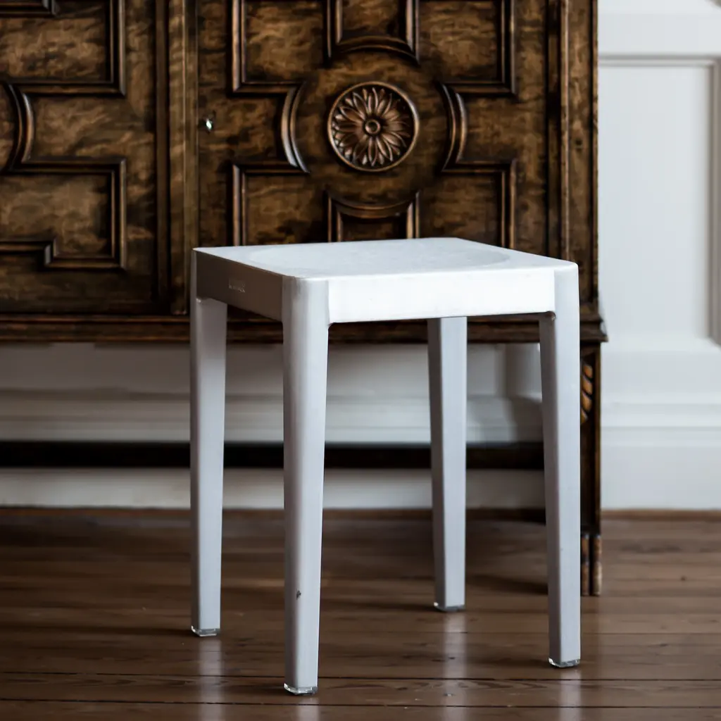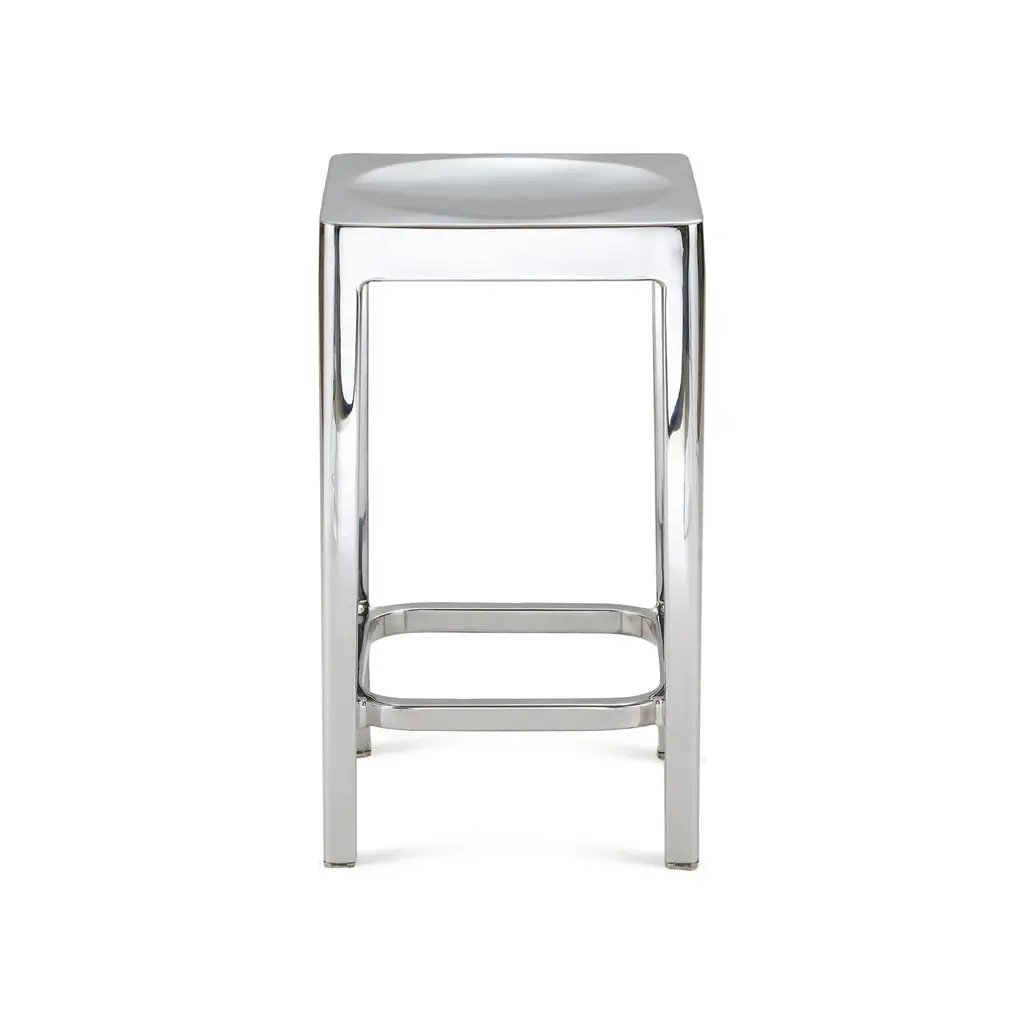A collaboration between Philippe Starck and Emeco for the Museum of Modern Art, the best-selling Emeco Stool is a chic addition to any contemporary interior. Crafted in the United States from recycled aluminum, this circle-in-a-square design is practical yet sophisticated, effortlessly accenting bar countertops and kitchen islands alike. Available in various sizes and suitable for indoor and outdoor use, these stools stack up to four high for effortless storage. Add a pop of color with the optional seat pad crafted from 100% recycled plastic. Highlights