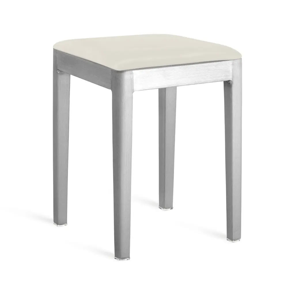 A collaboration between Philippe Starck and Emeco for the Museum of Modern Art, the best-selling Emeco Stool is a chic addition to any contemporary interior. Crafted in the United States from recycled aluminum, this circle-in-a-square design is practical yet sophisticated, effortlessly accenting bar countertops and kitchen islands alike. Available in various sizes and suitable for indoor and outdoor use, these stools stack up to four high for effortless storage. Add a pop of color with the optional seat pad crafted from 100% recycled plastic. Highlights