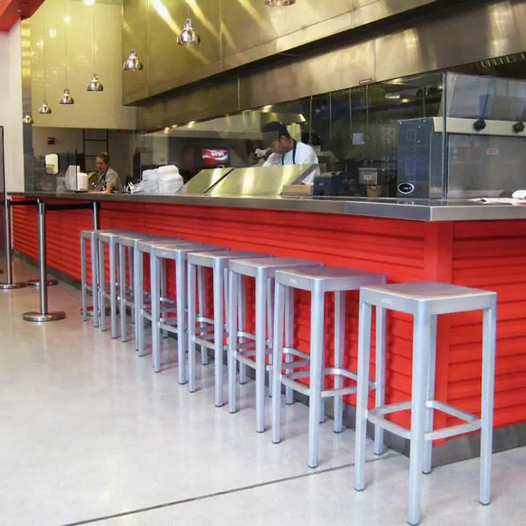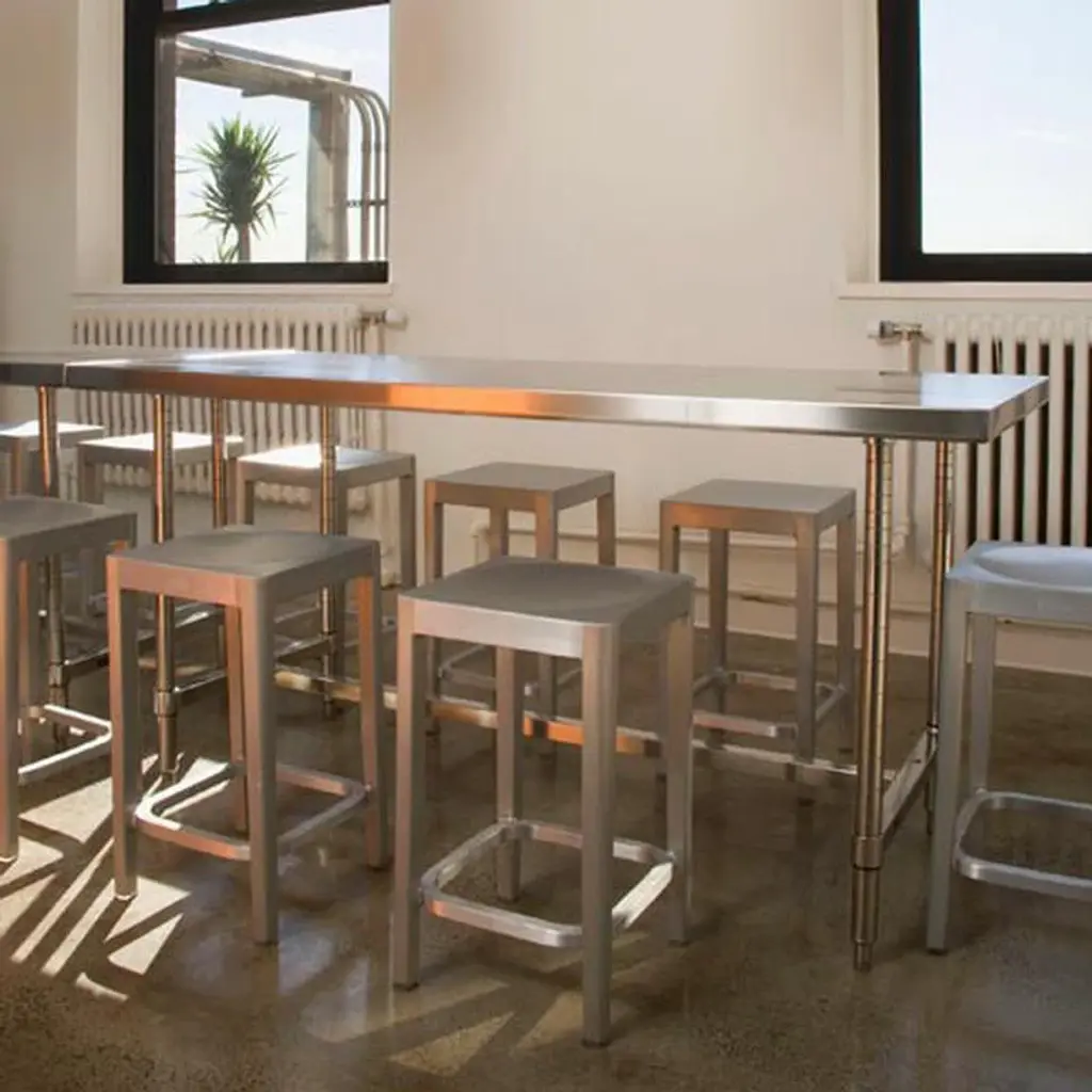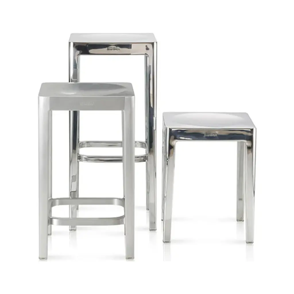 A collaboration between Philippe Starck and Emeco for the Museum of Modern Art, the best-selling Emeco Stool is a chic addition to any contemporary interior. Crafted in the United States from recycled aluminum, this circle-in-a-square design is practical yet sophisticated, effortlessly accenting bar countertops and kitchen islands alike. Available in various sizes and suitable for indoor and outdoor use, these stools stack up to four high for effortless storage. Add a pop of color with the optional seat pad crafted from 100% recycled plastic. Highlights