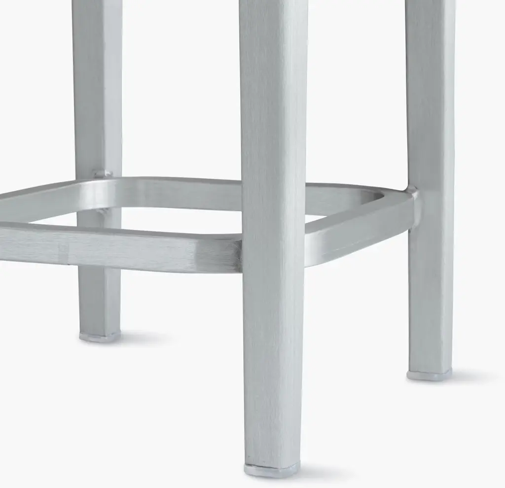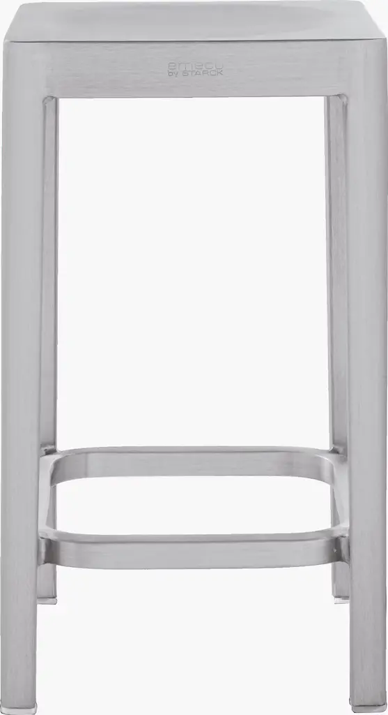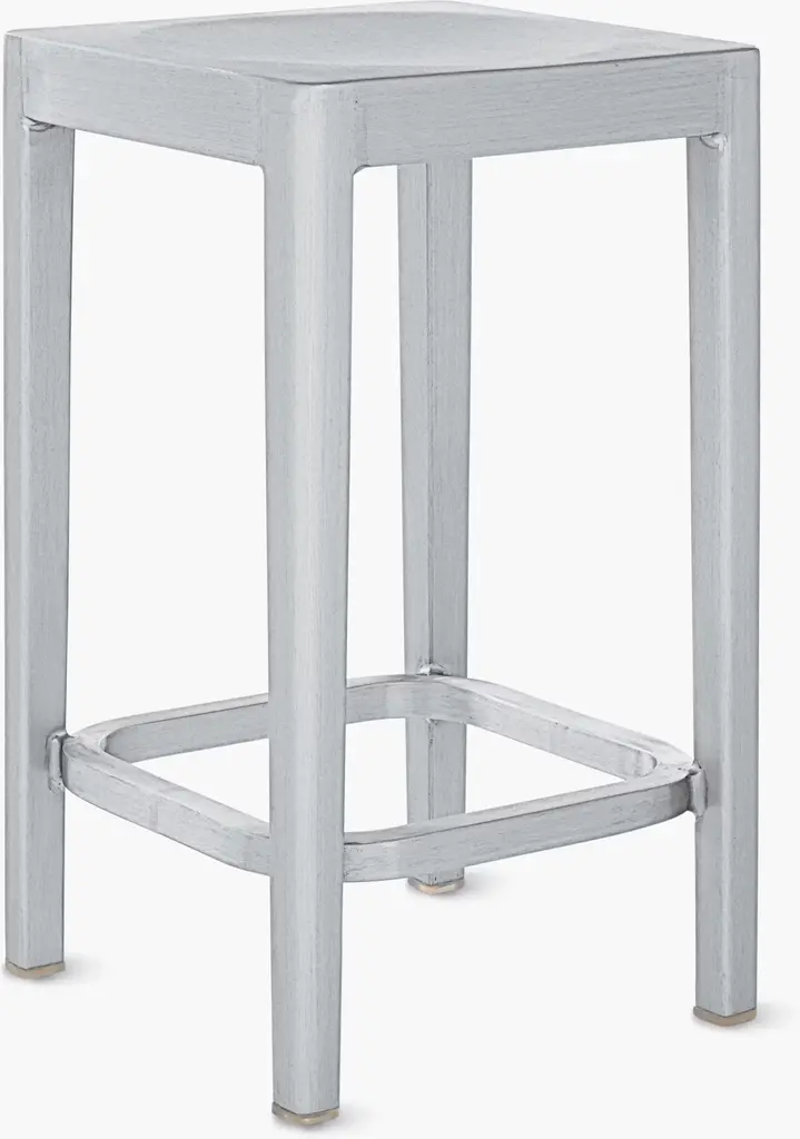The straightforward Emeco Stool (2001) is crafted using the same 77-step process that Emeco perfected to satisfy the military's need for lightweight, corrosion-resistant chairs for submarines during WWII. The company's proprietary metal processing method yields aluminum three times stronger than steel - and a stool so durable that it has an estimated life span of 150 years. Stool with brushed finish suitable for outdoor use. This is the authentic Emeco Stool by Emeco.