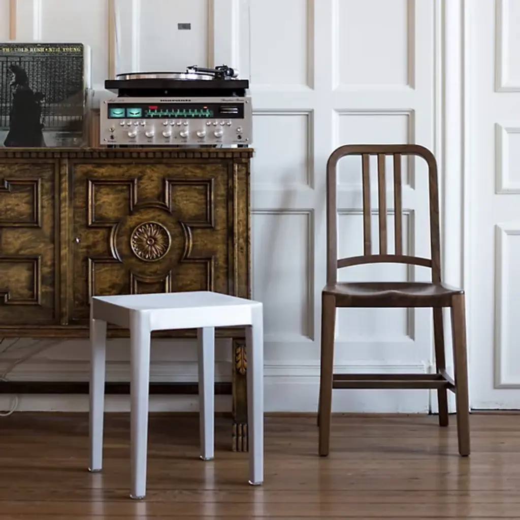 The Emeco Stool by Emeco blends sleek style and cozy comfort into a contemporary furniture piece that’s sure to become everyone’s favorite seat in the house. The “circle in a square” design was created with Philippe Starck after The Museum of Modern Art made a request to have a stool made for the “Mies Van der Rohe in Berlin” retrospective. Its aluminum construction is also easy to clean and maintain.